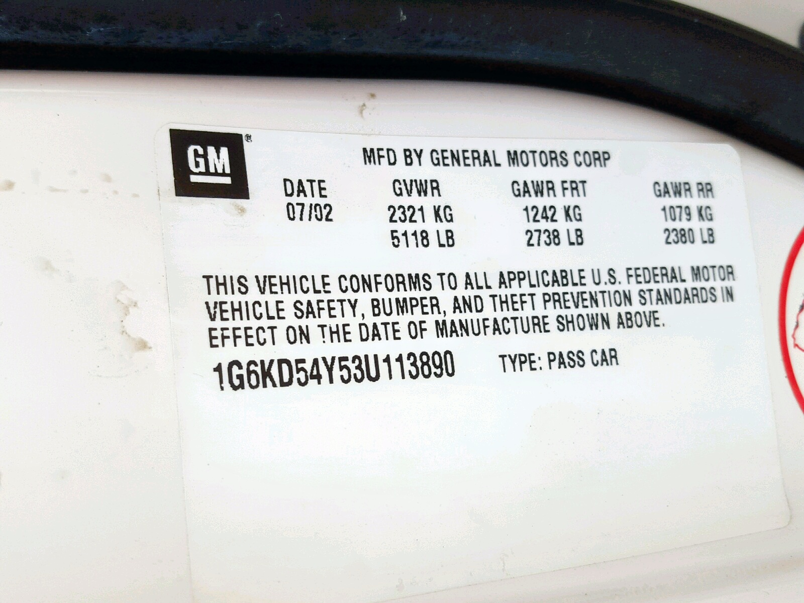 VIN: 1G6KD54Y53U113890