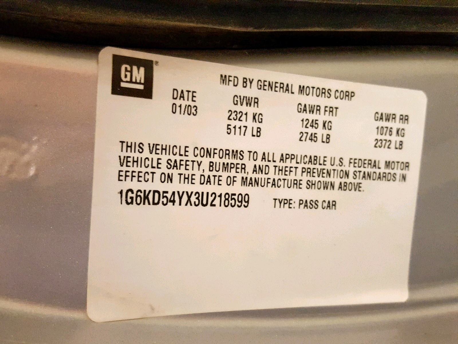 VIN: 1G6KD54YX3U218599