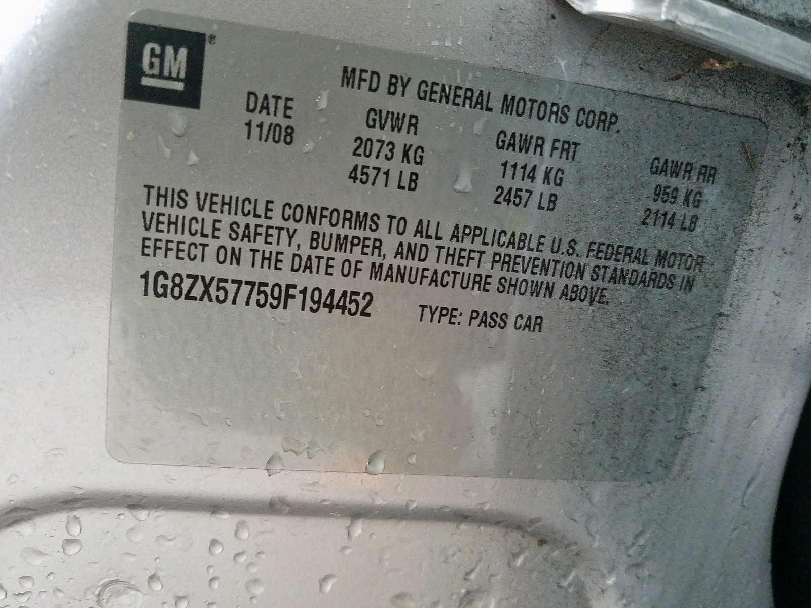 VIN: 1G8ZX57759F194452