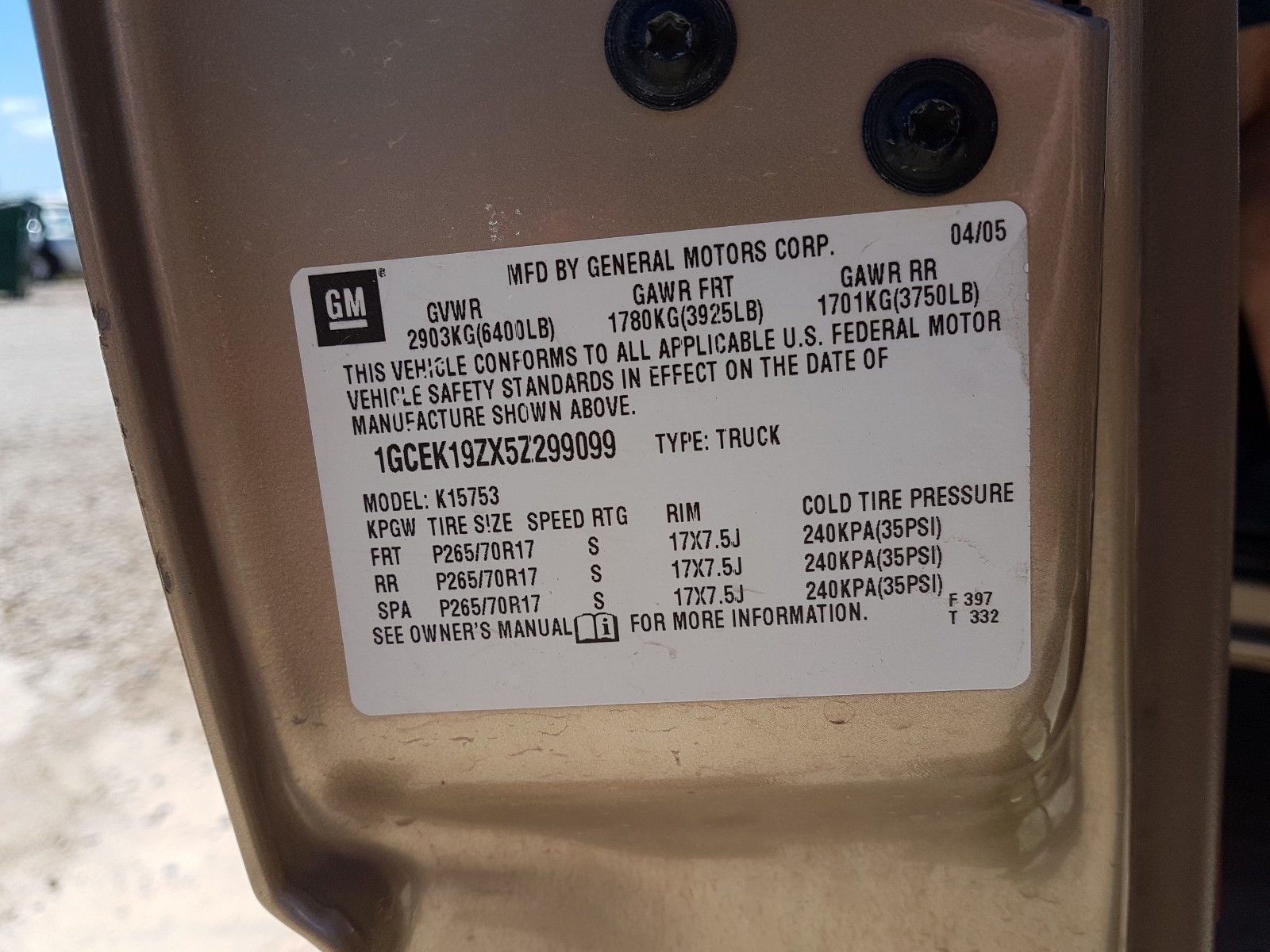 VIN: 1GCEK19ZX5Z299099