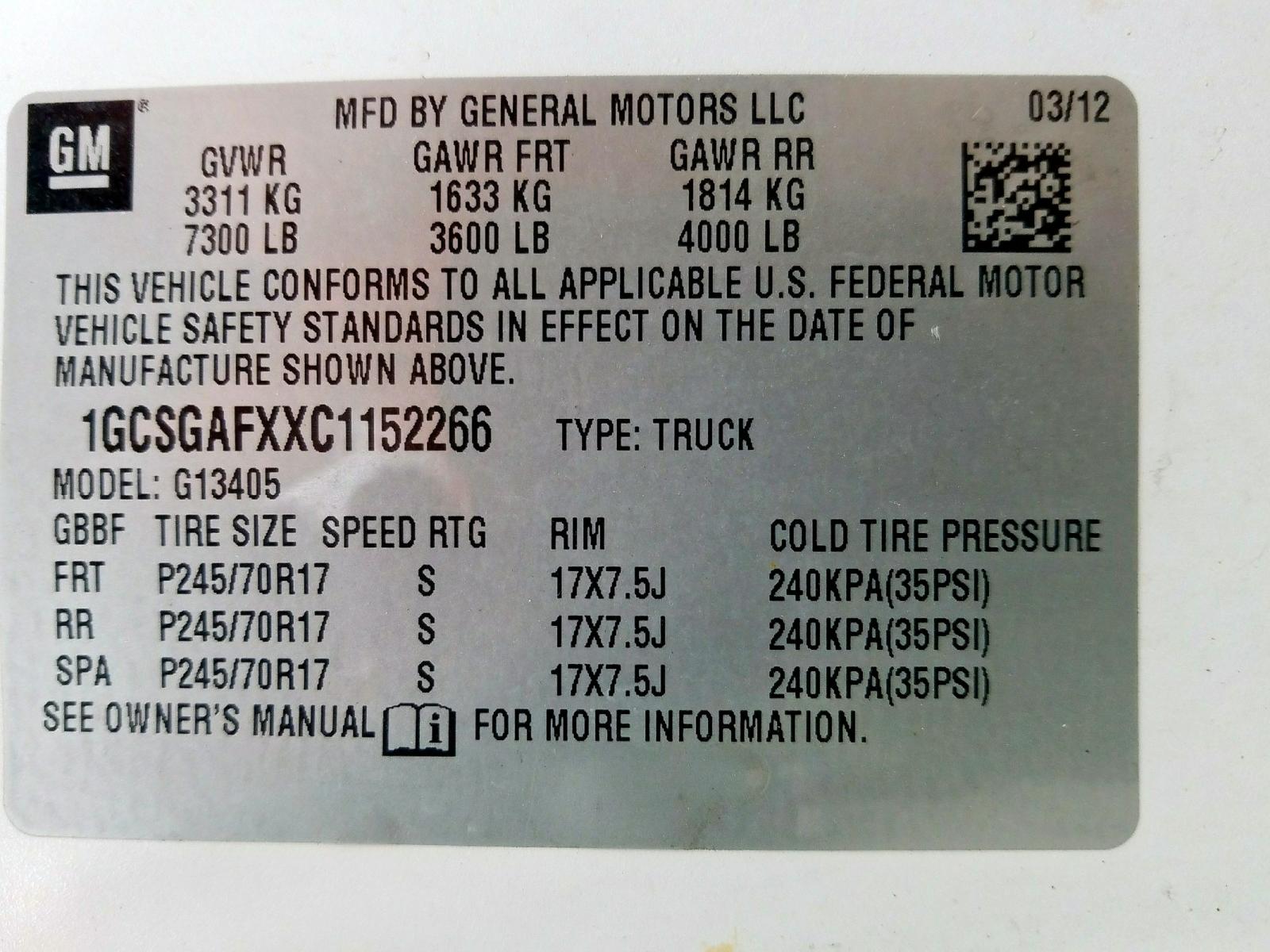 VIN: 1GCSGAFXXC1152266