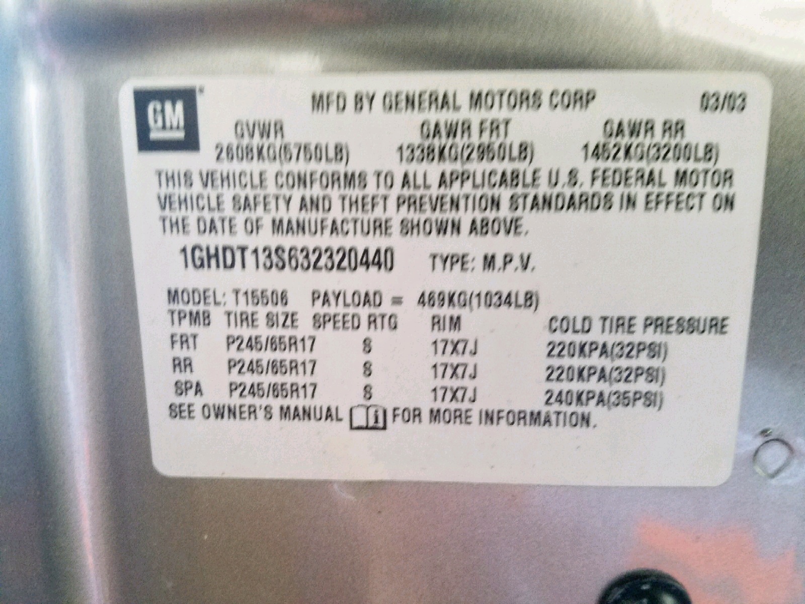 VIN: 1GHDT13S632320440