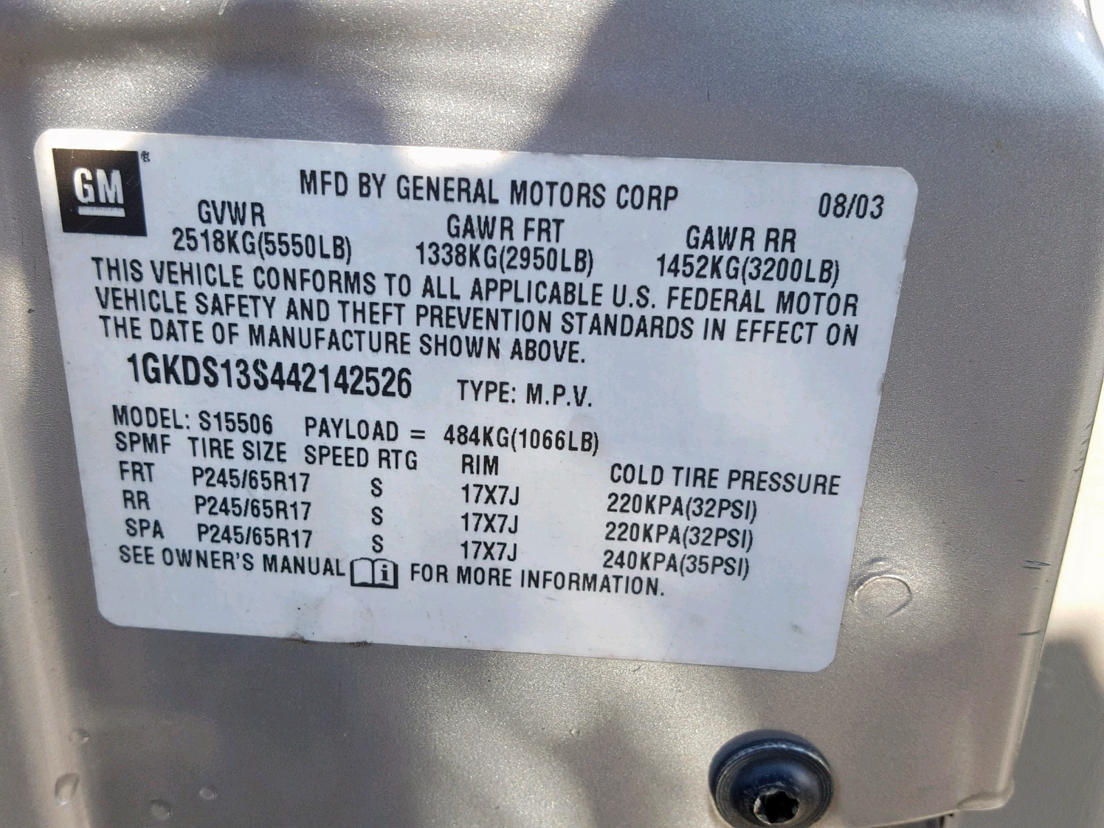 VIN: 1GKDS13S442142526
