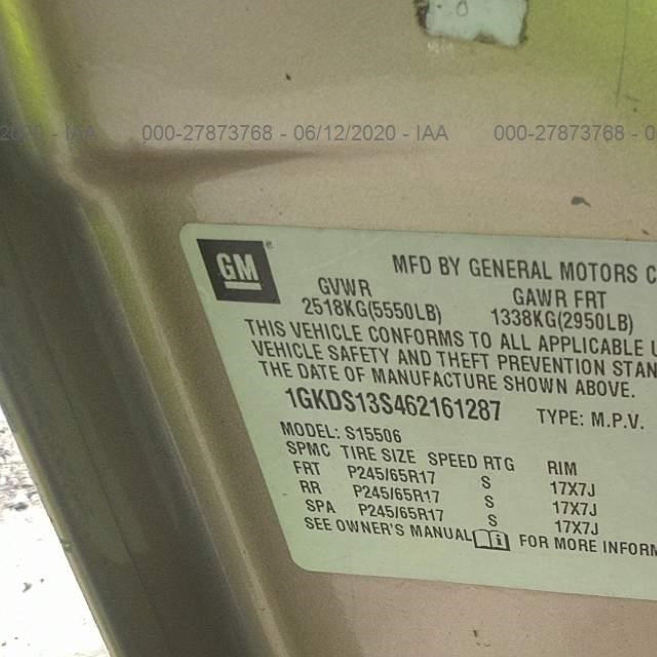 VIN: 1GKDS13S462161287
