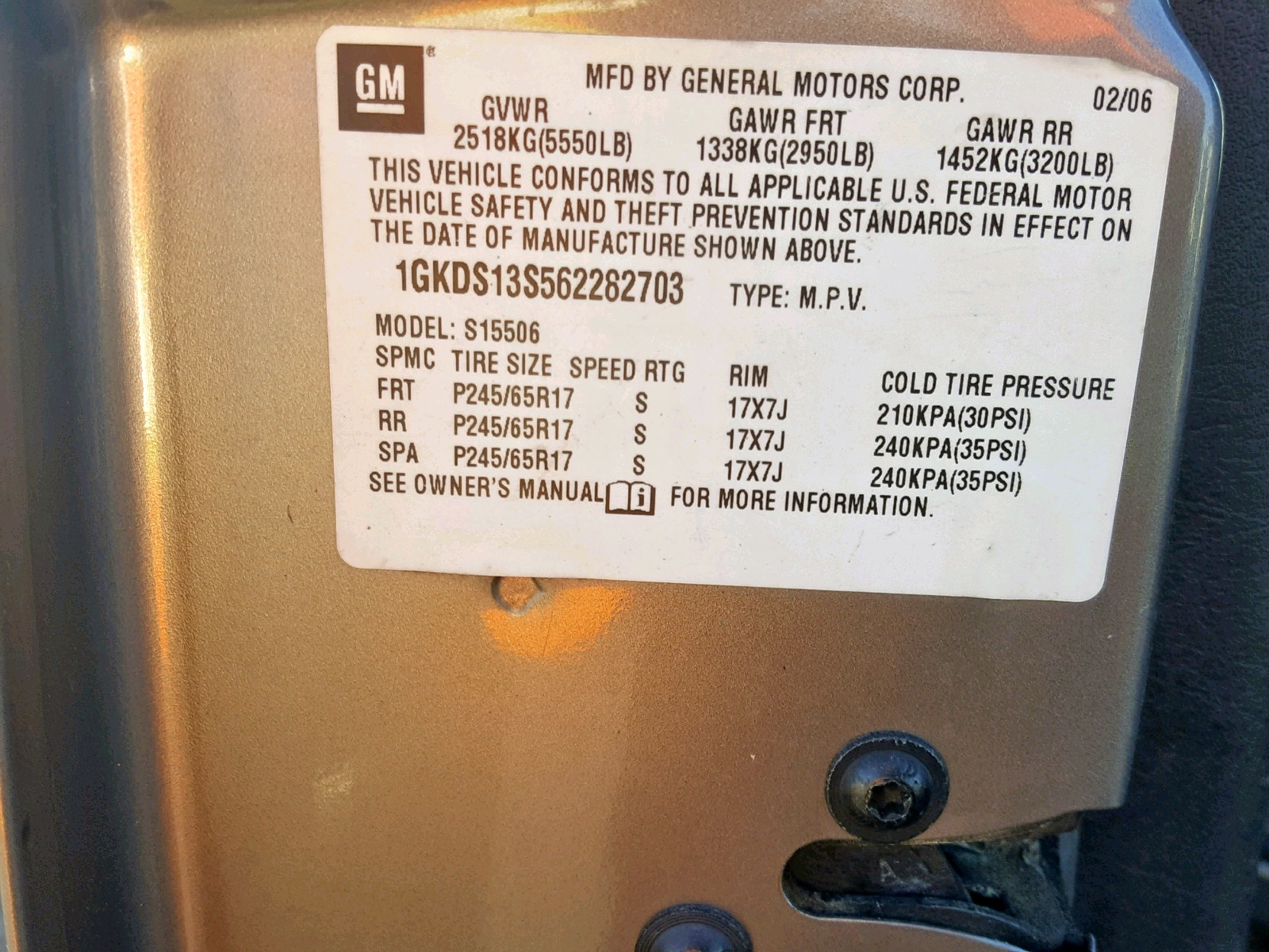 VIN: 1GKDS13S562282703