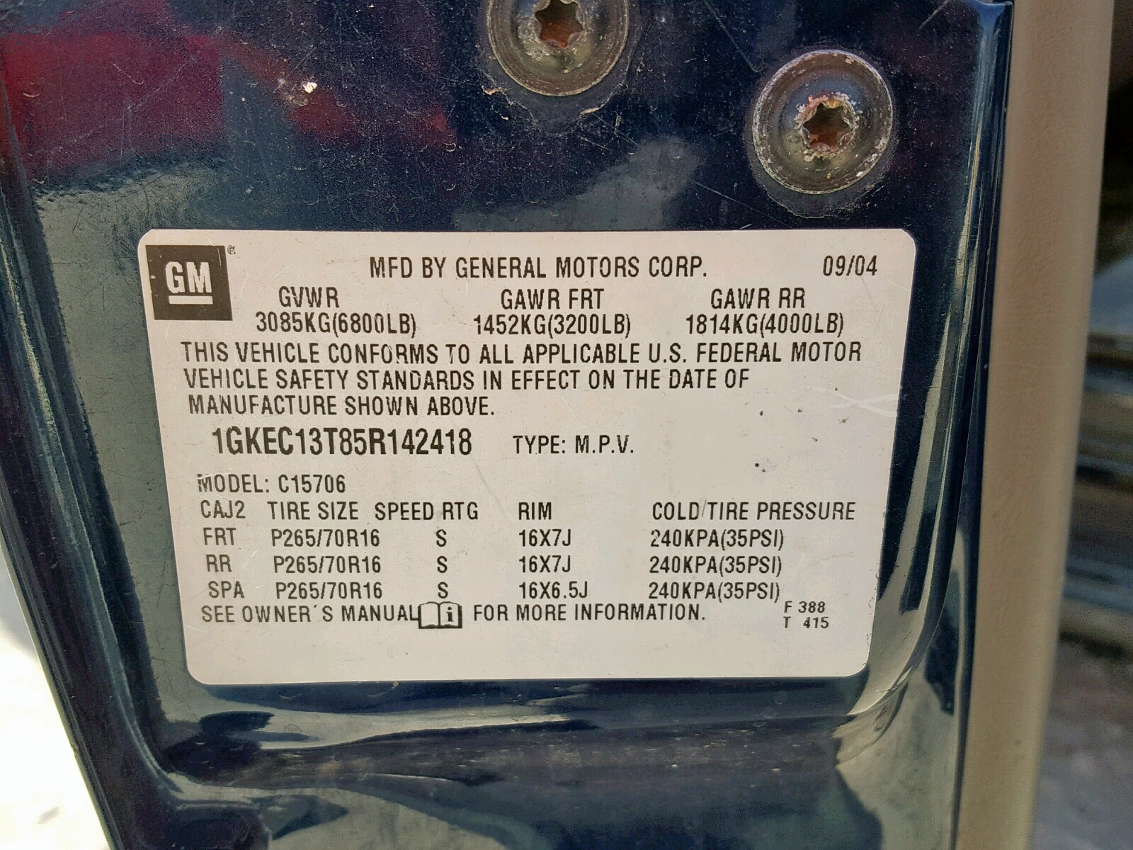 VIN: 1GKEC13T85R142418