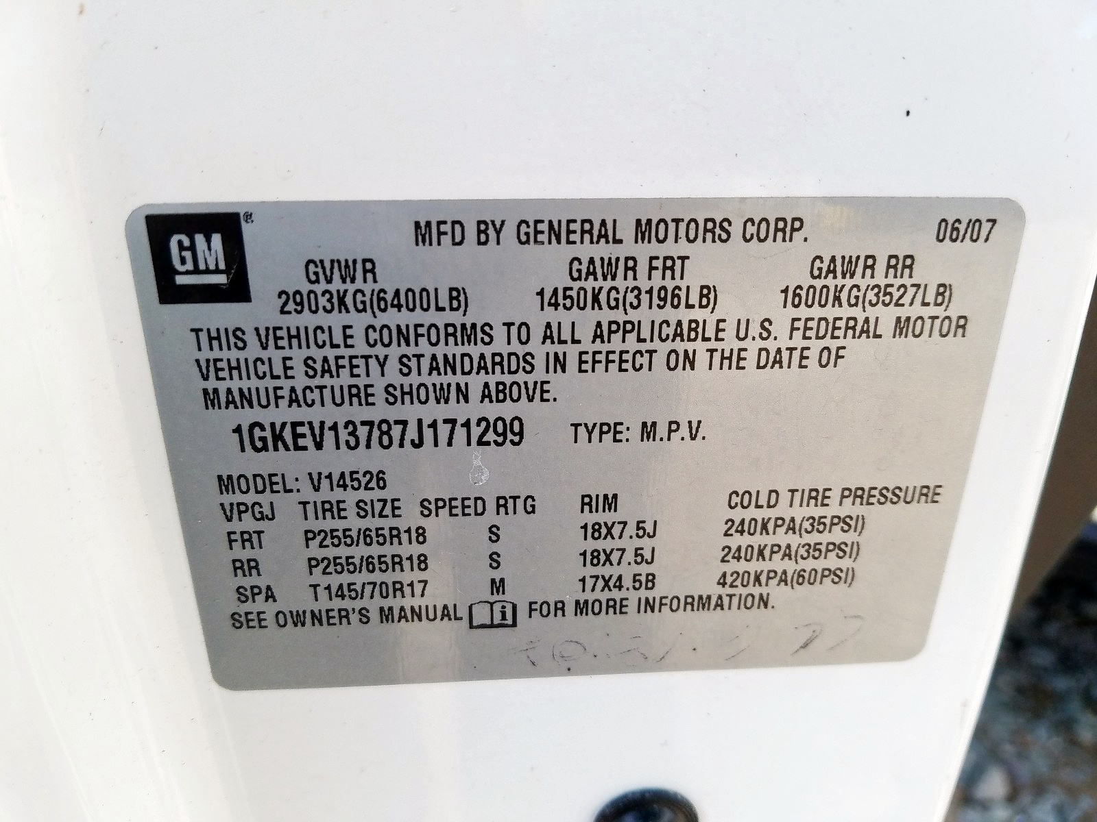 VIN: 1GKEV13787J171299