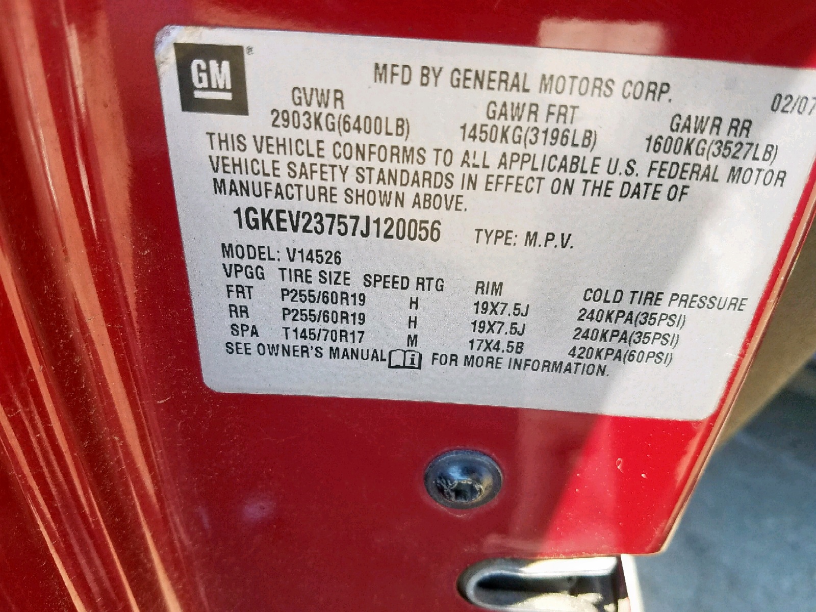 VIN: 1GKEV23757J120056