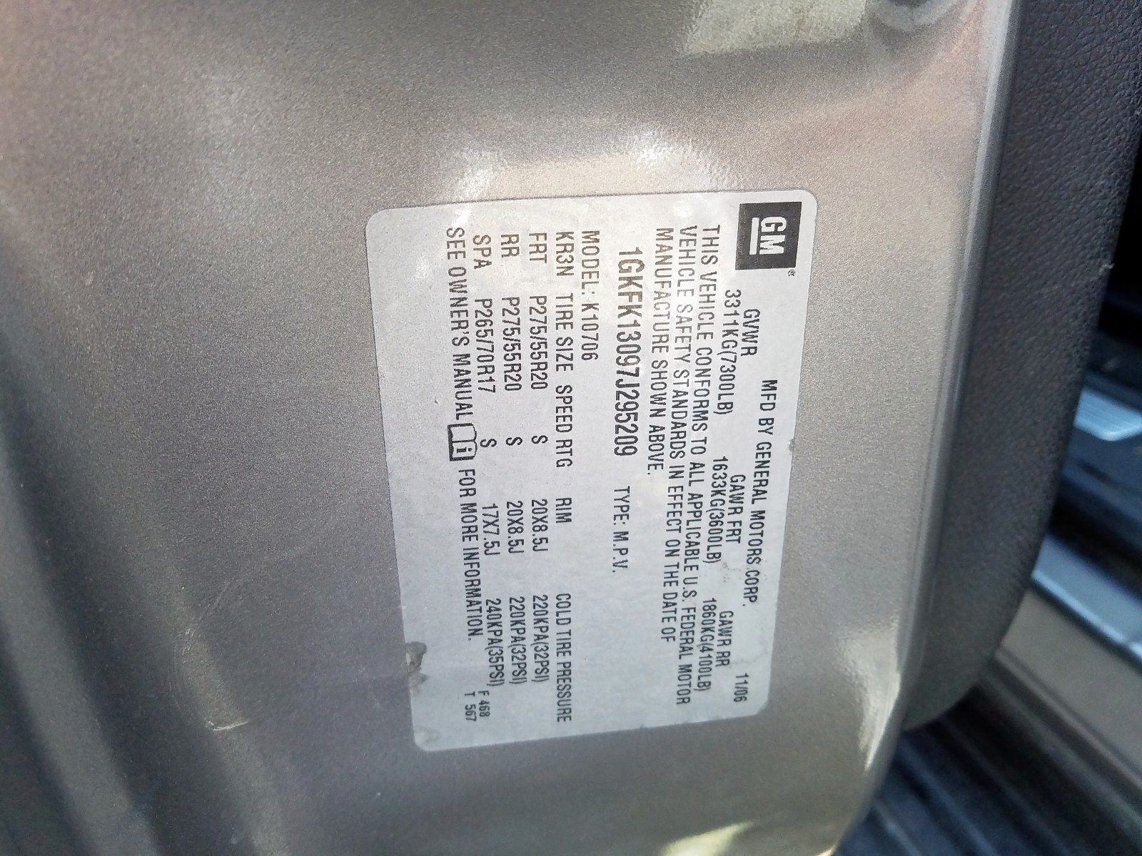 VIN: 1GKFK13097J295209