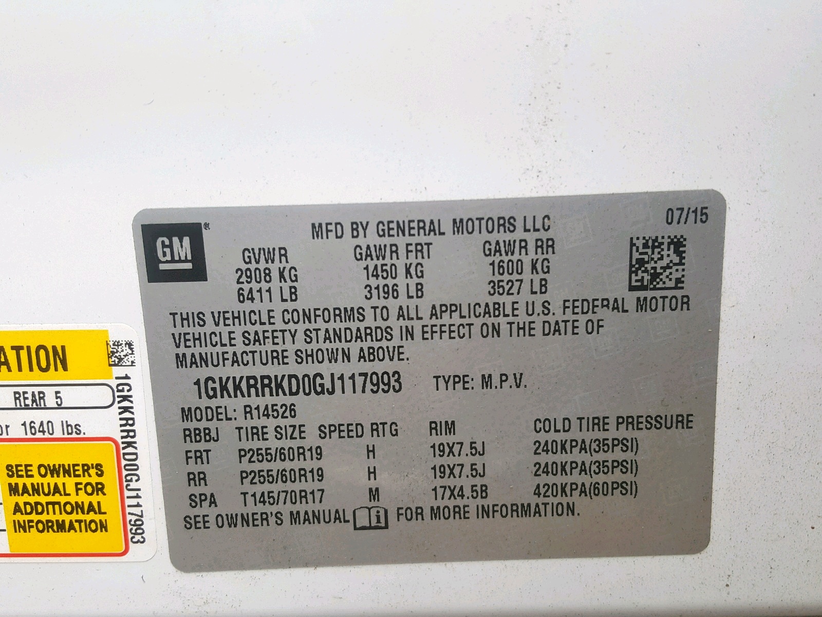 VIN: 1GKKRRKD0GJ117993