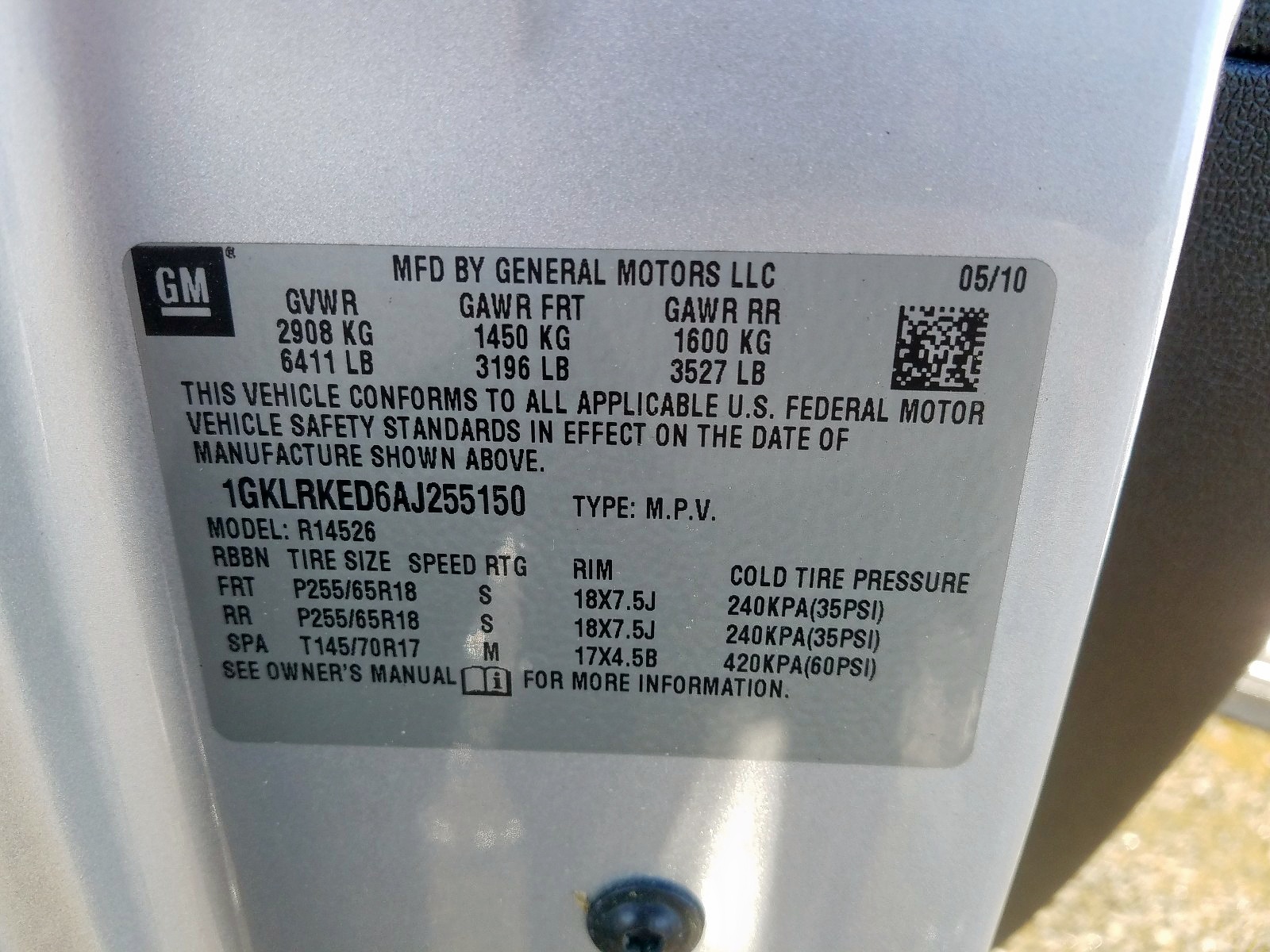 VIN: 1GKLRKED6AJ255150