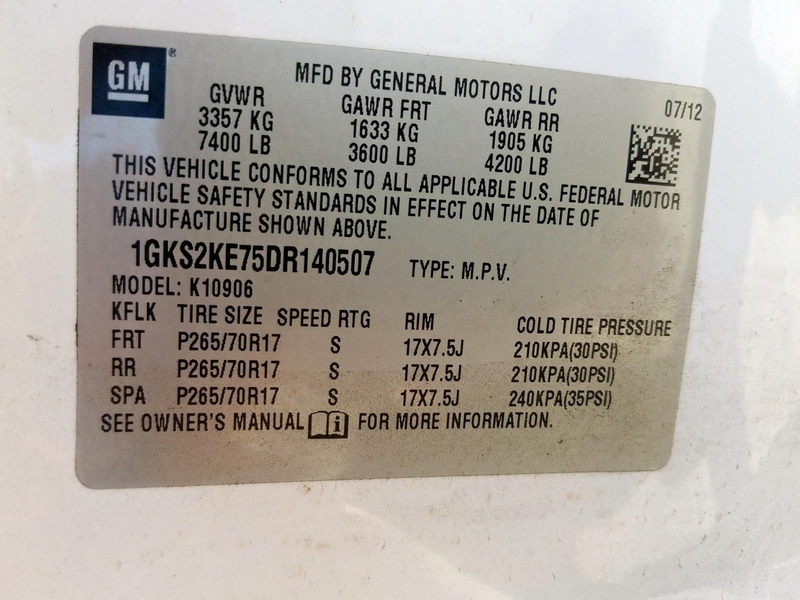 VIN: 1GKS2KE75DR140507