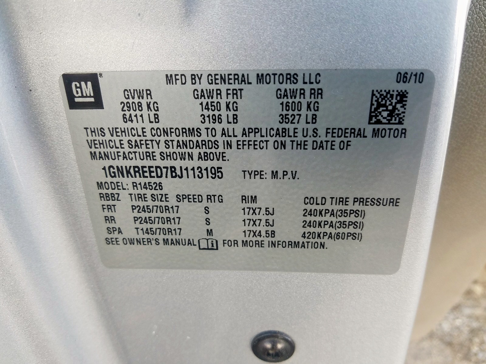 VIN: 1GNKREED7BJ113195