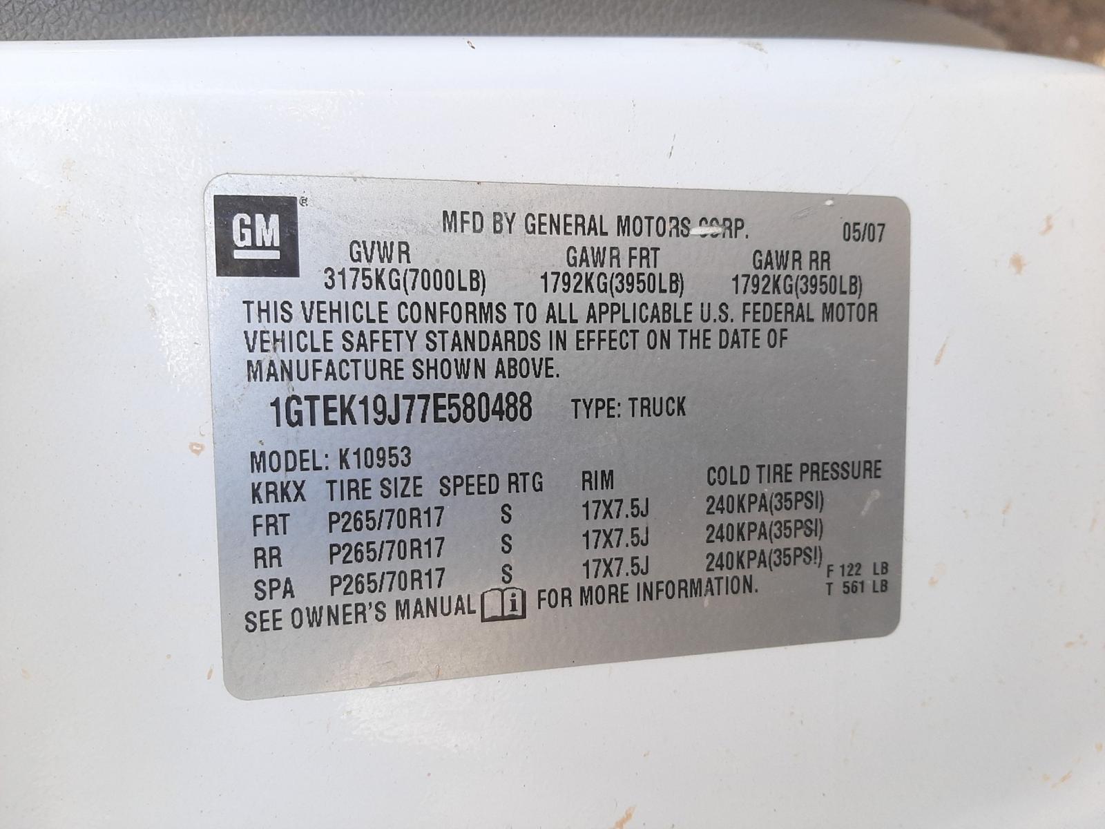 VIN: 1GTEK19J77E580488
