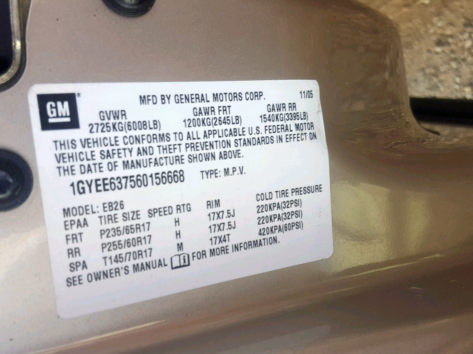 VIN: 1GYEE637560156668