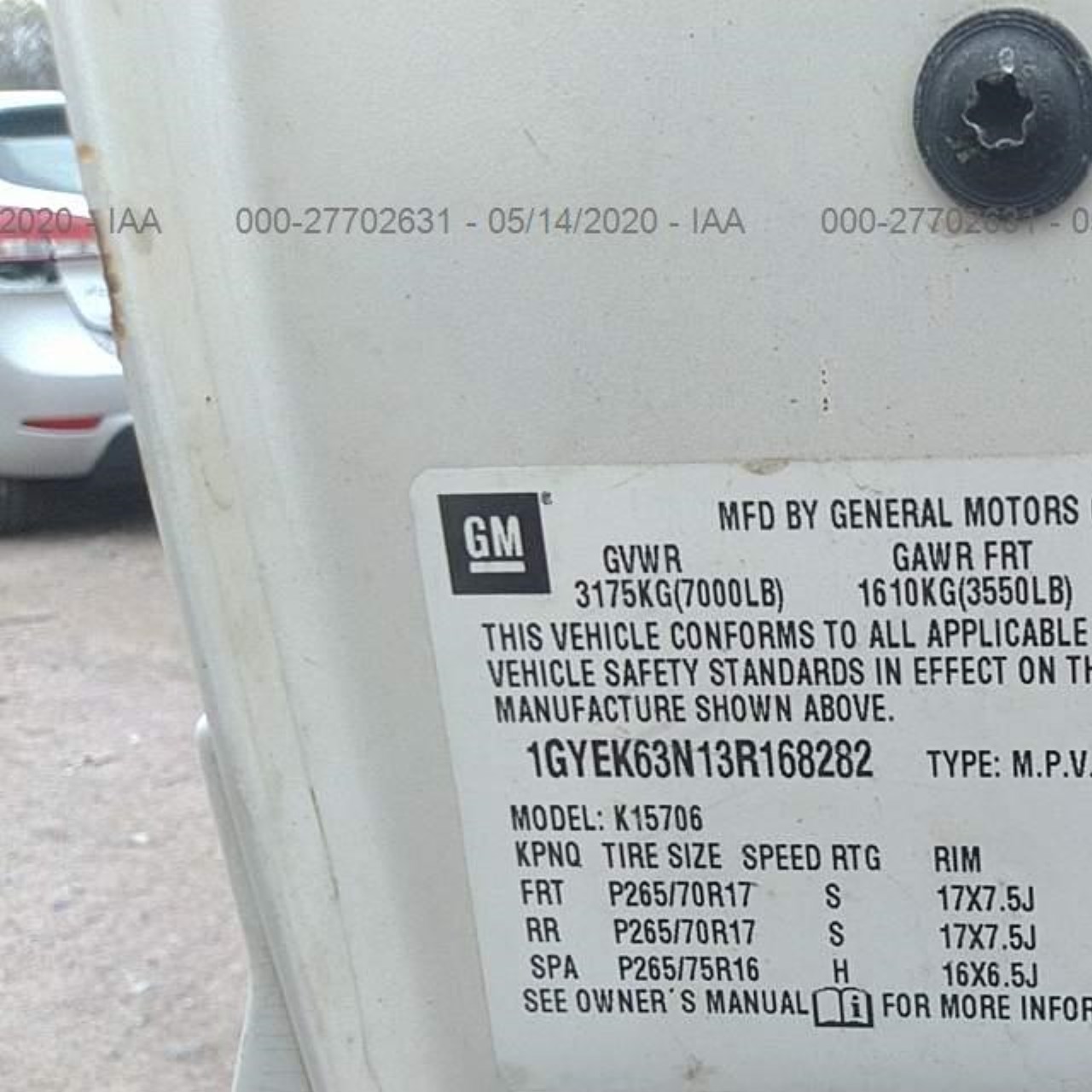 VIN: 1GYEK63N13R168282