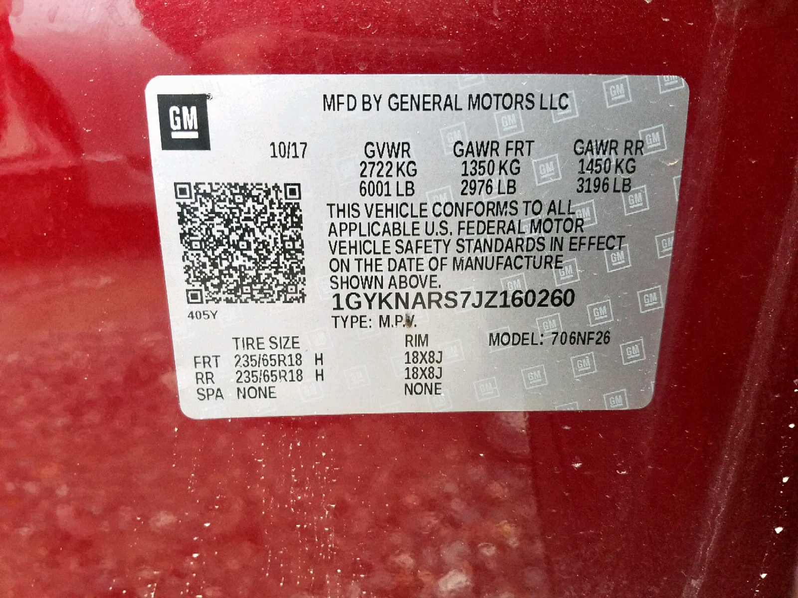 VIN: 1GYKNARS7JZ160260