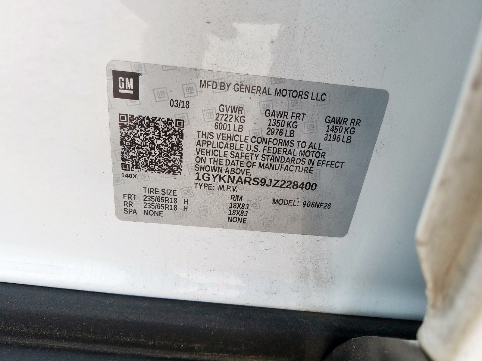 VIN: 1GYKNARS9JZ228400