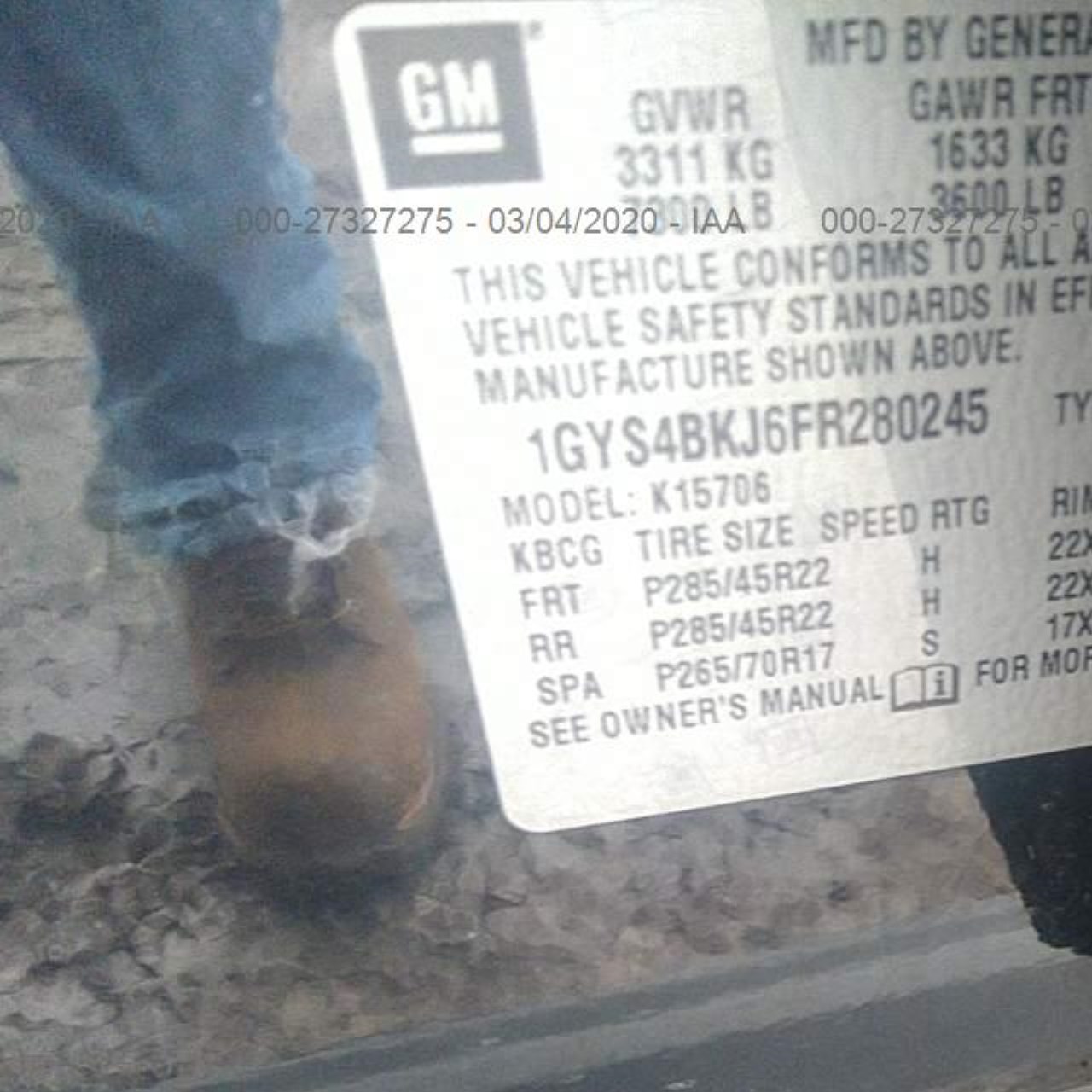 VIN: 1GYS4BKJ6FR280245