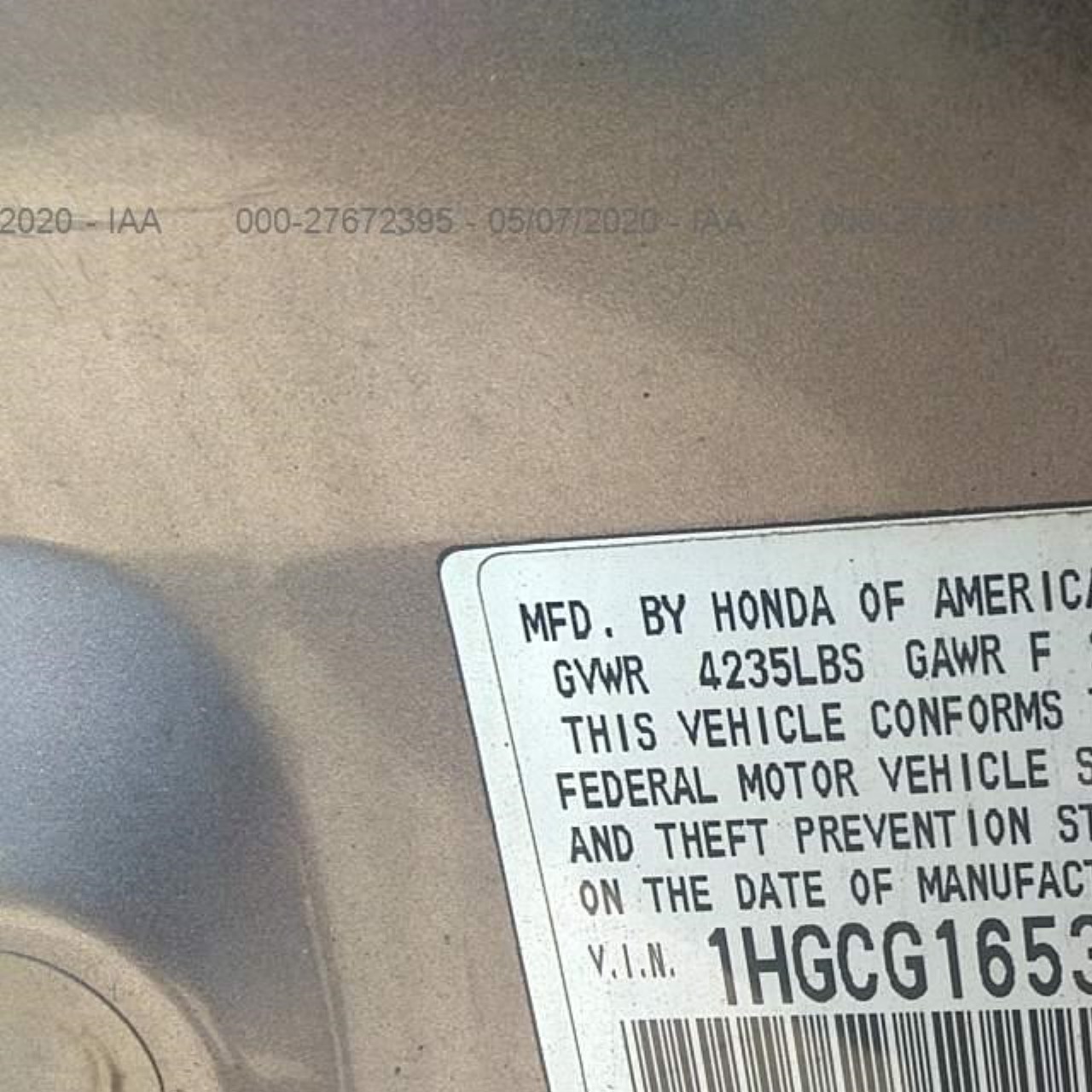 VIN: 1HGCG1653YA060573
