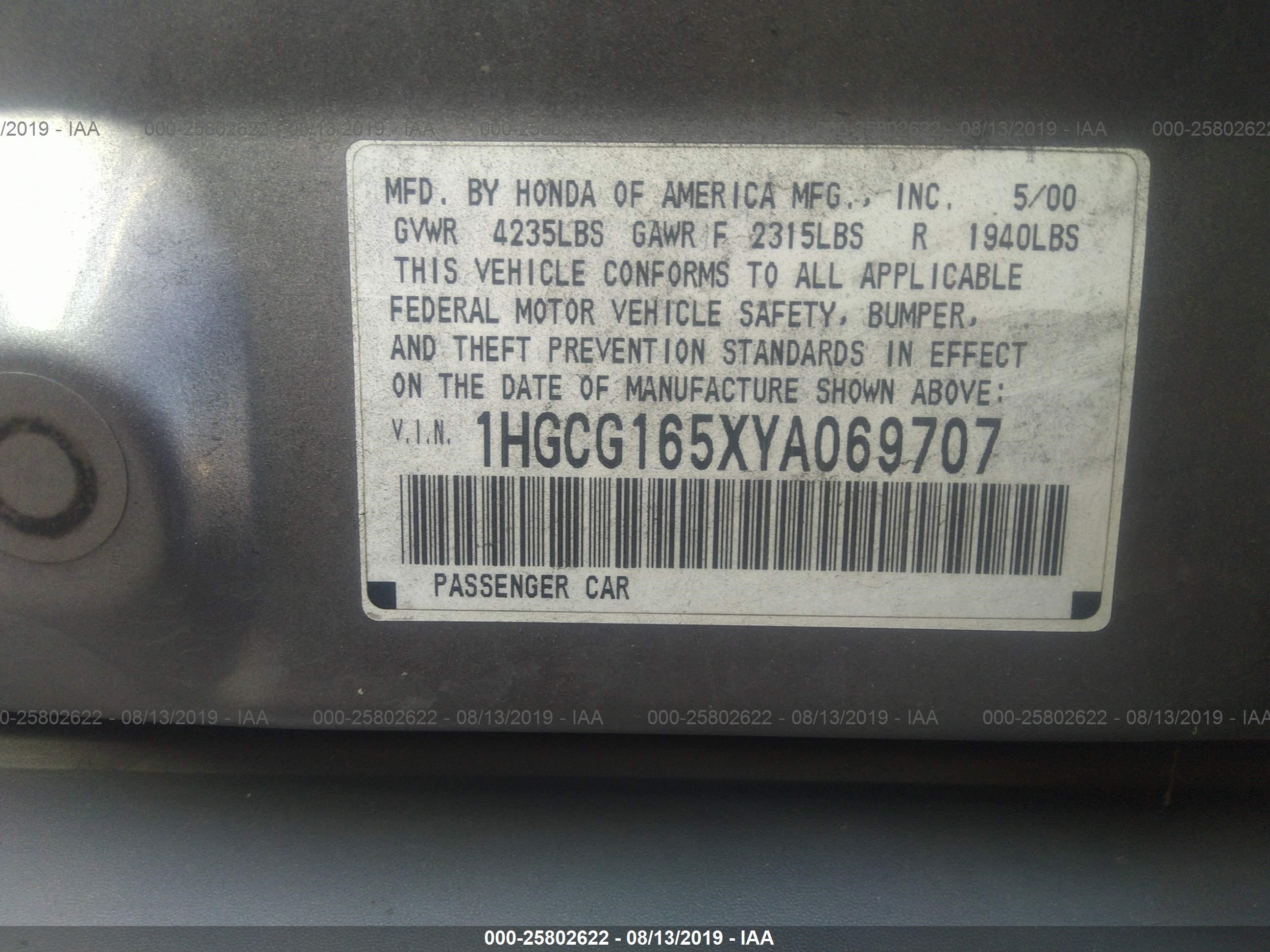 VIN: 1HGCG165XYA069707