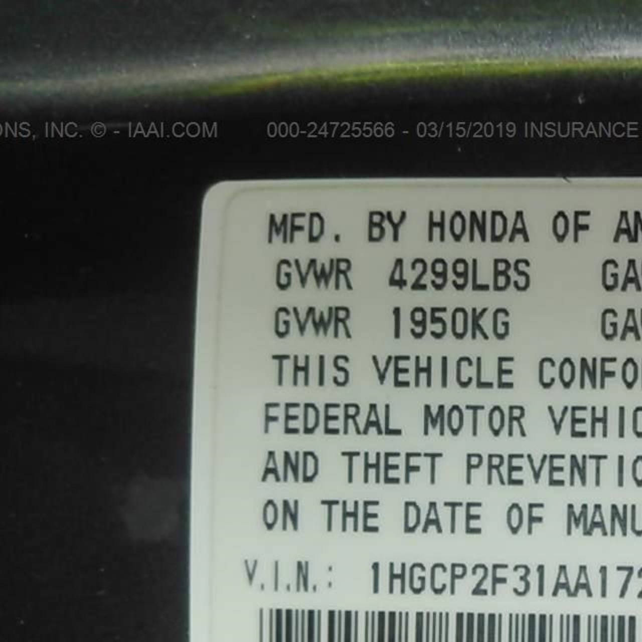VIN: 1HGCP2F31AA172024