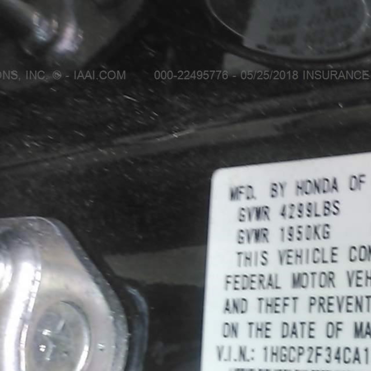 VIN: 1HGCP2F34CA159786
