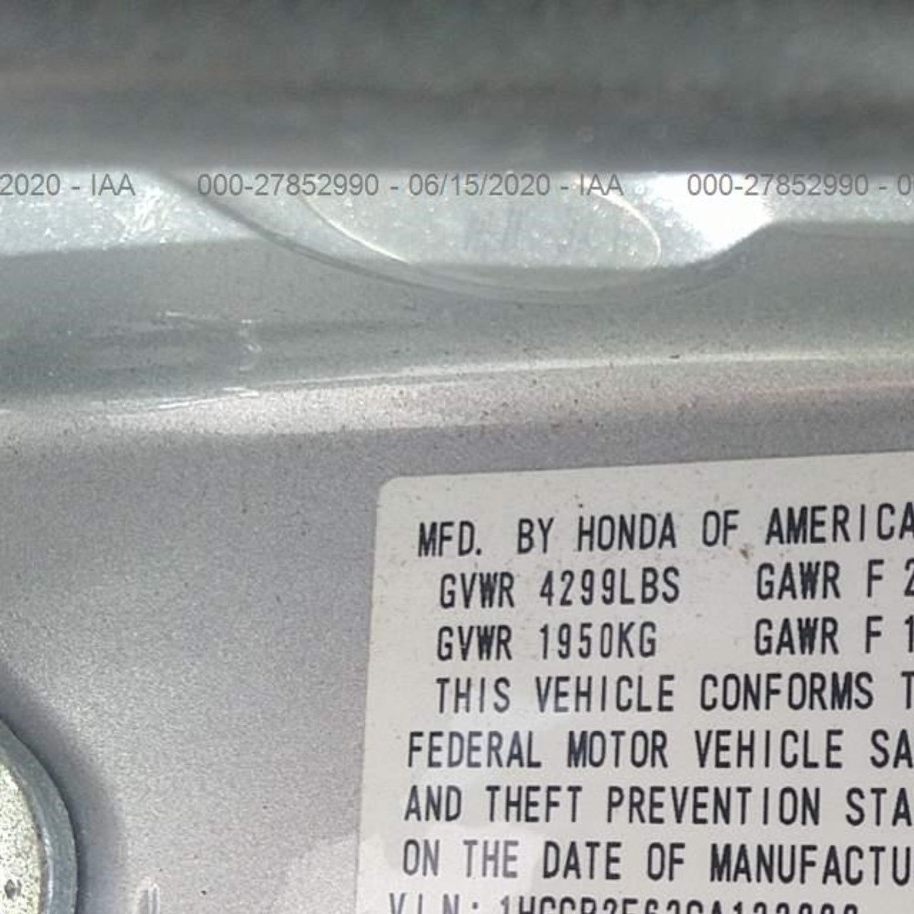 VIN: 1HGCP2F63CA133996