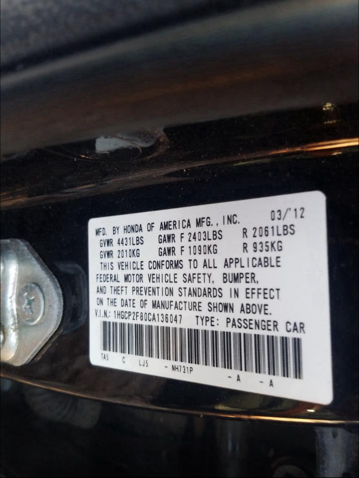 VIN: 1HGCP2F80CA136047