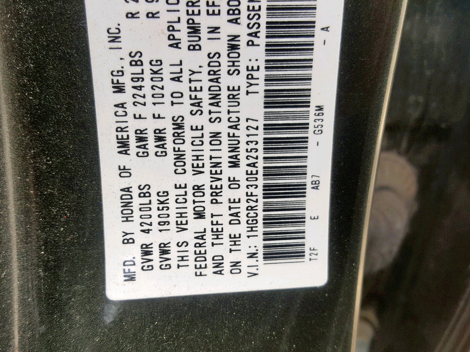 VIN: 1HGCR2F30EA253127