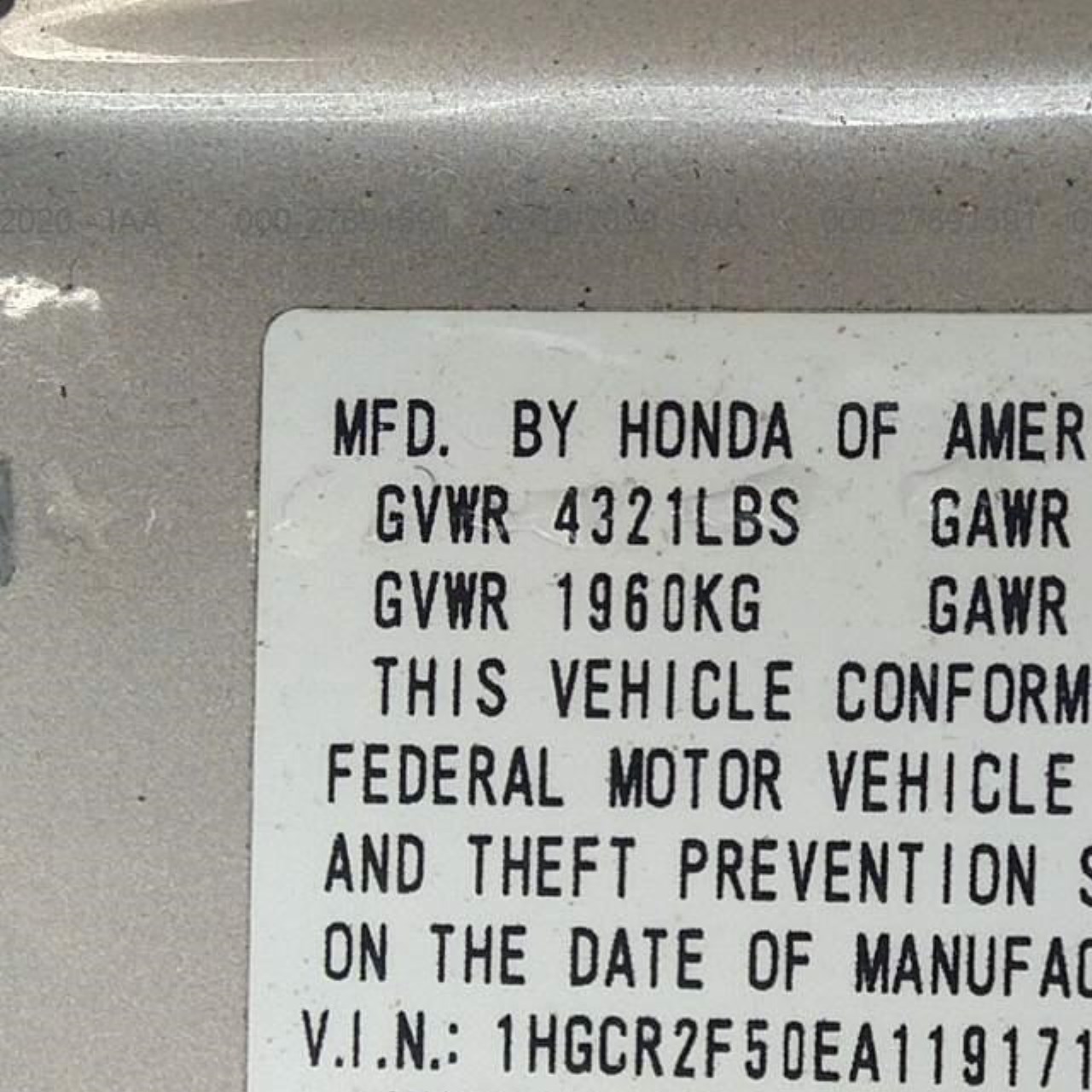 VIN: 1HGCR2F50EA119171
