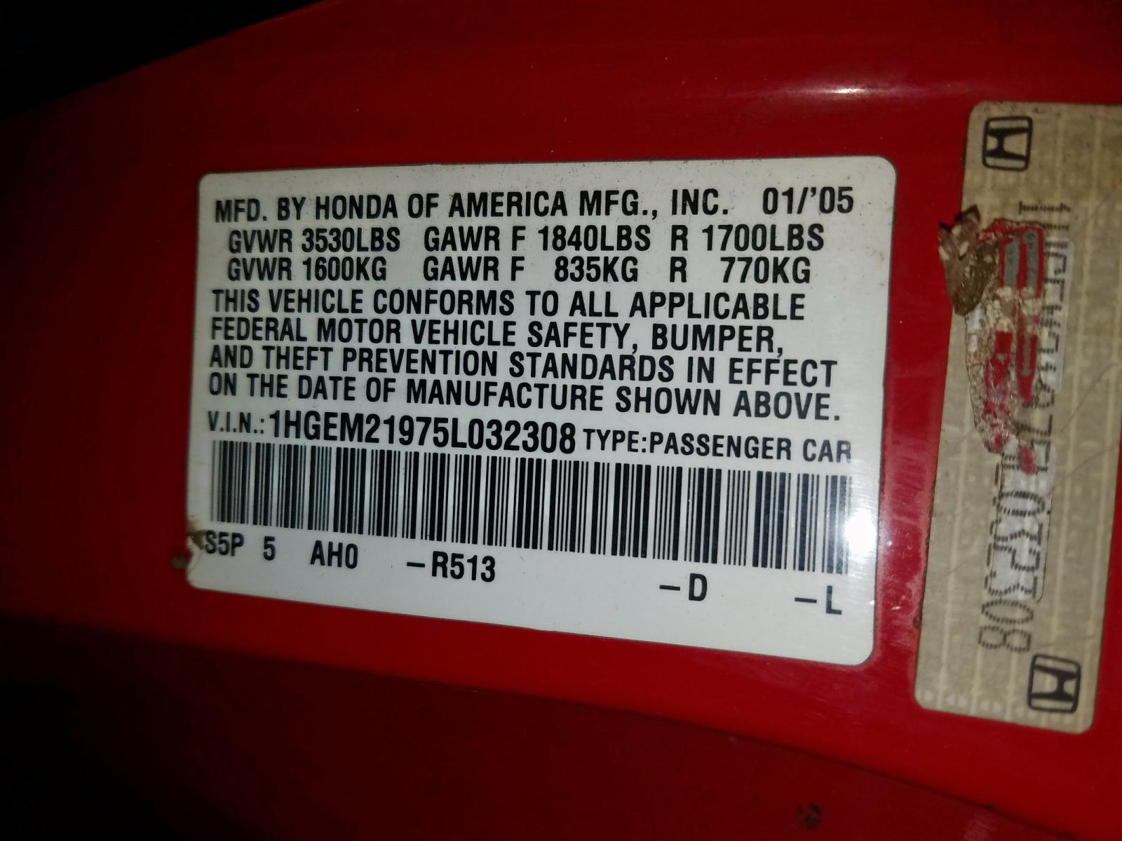 VIN: 1HGEM21975L032308