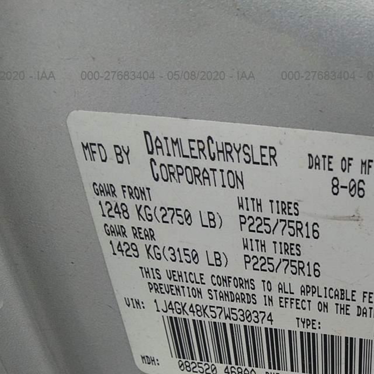 VIN: 1J4GK48K57W530374