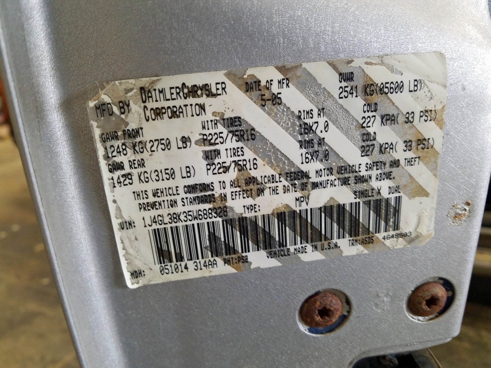 VIN: 1J4GL38K35W688328