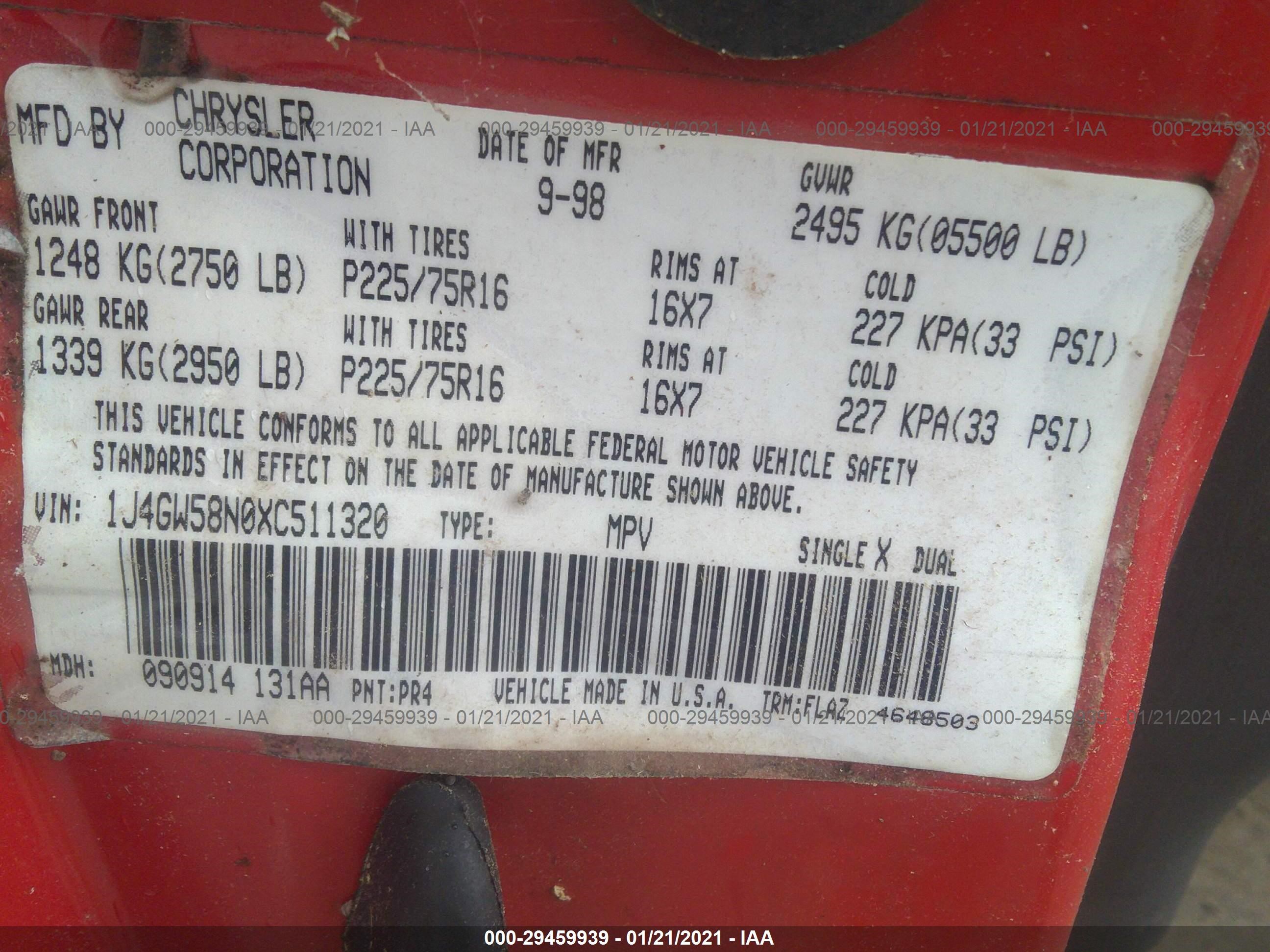 VIN: 1J4GW58N0XC511320