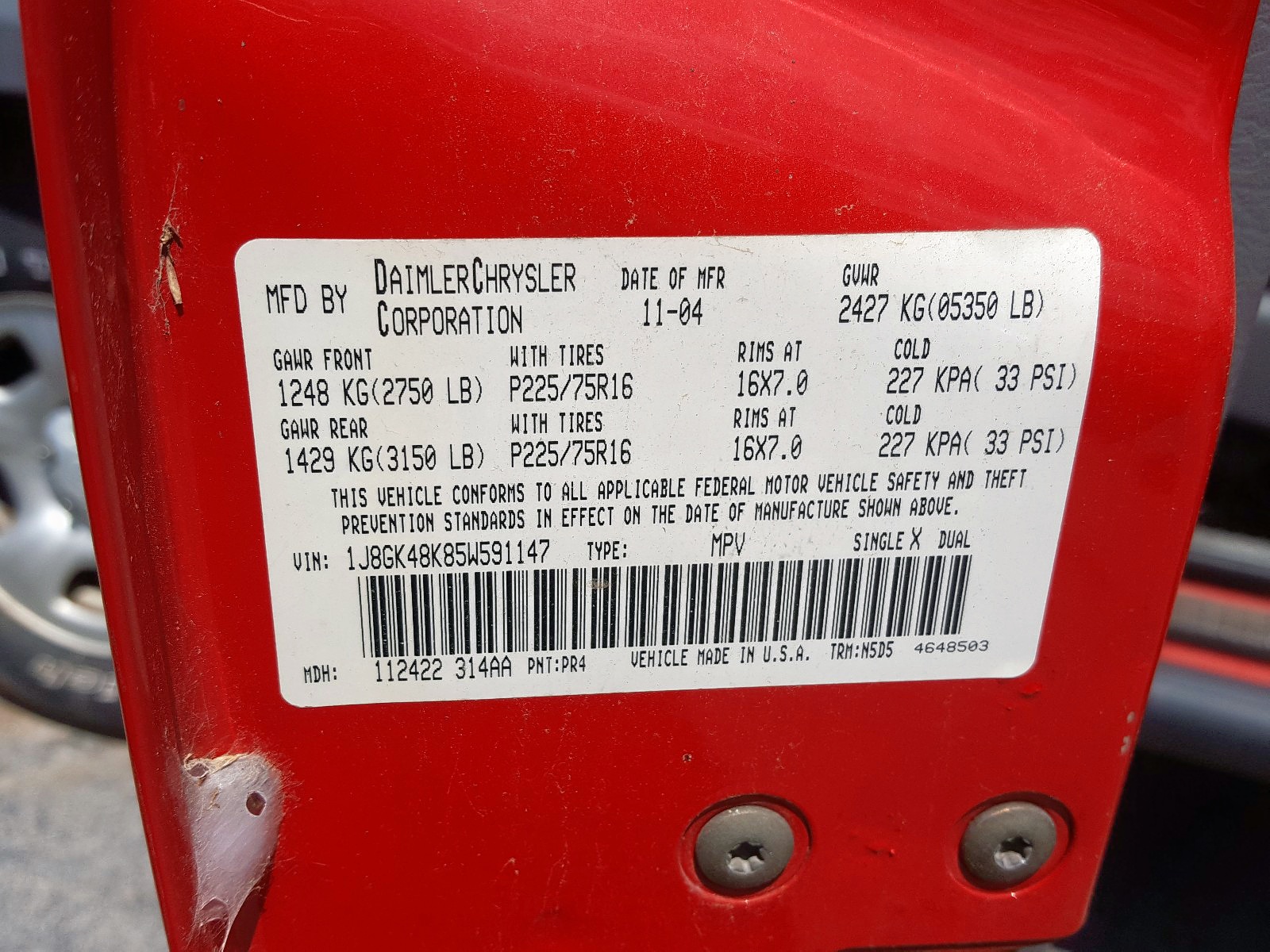 VIN: 1J8GK48K85W591147