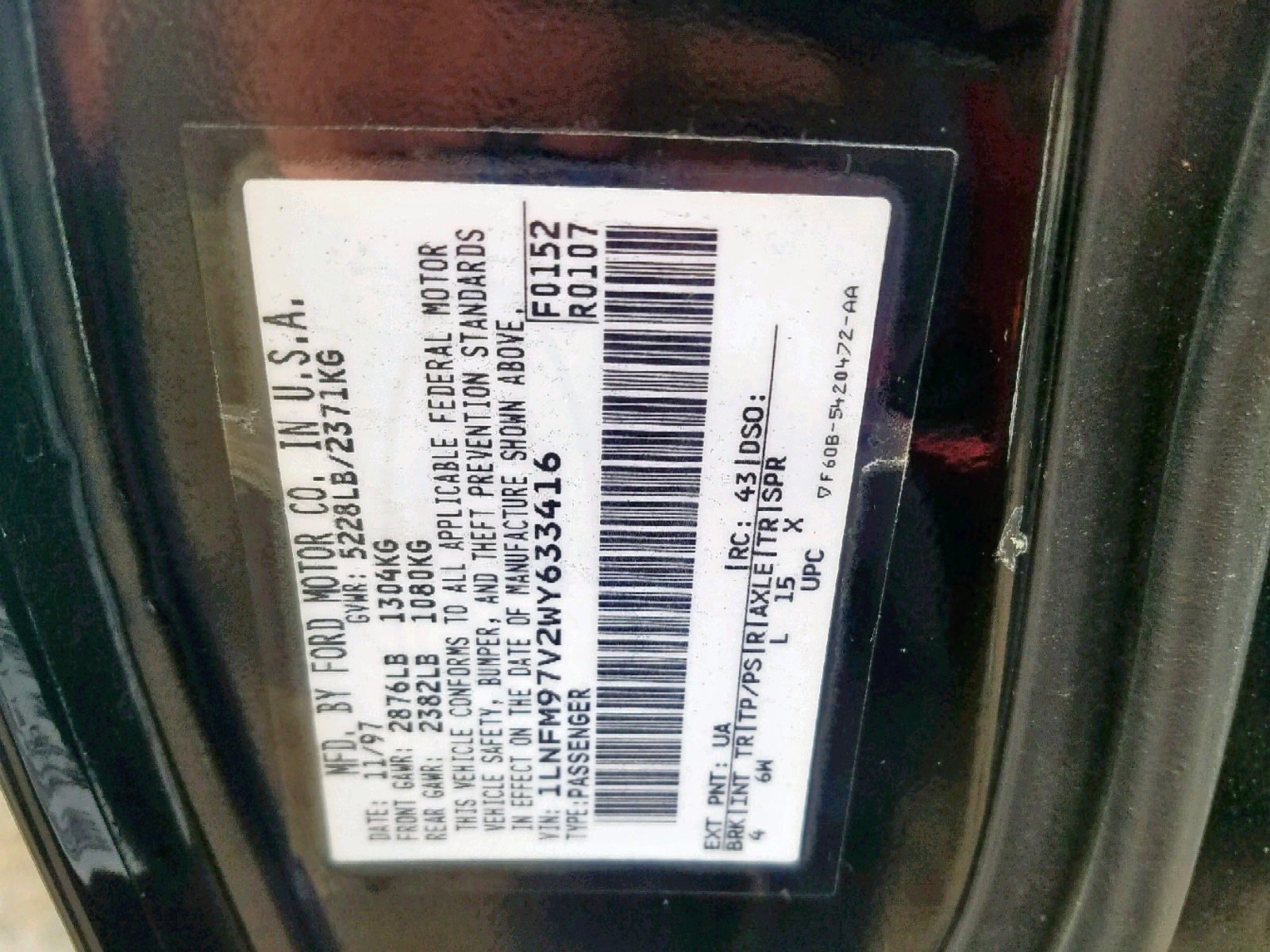 VIN: 1LNFM97V2WY633416