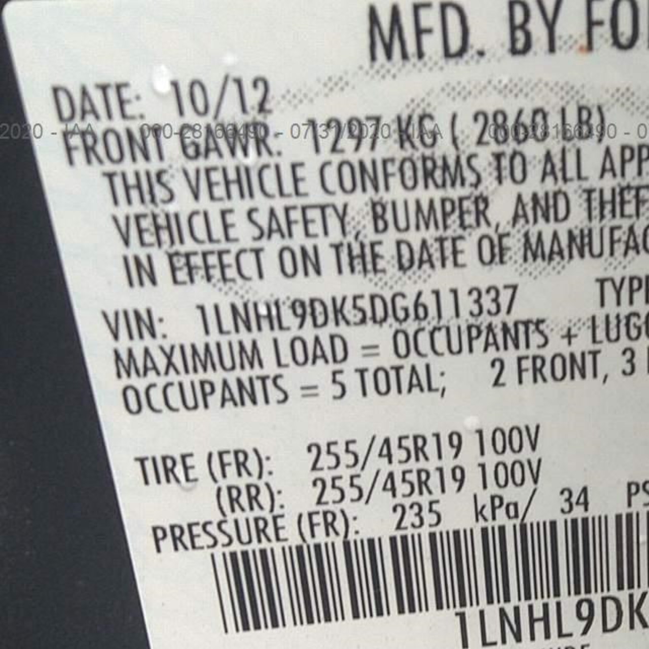 VIN: 1LNHL9DK5DG611337