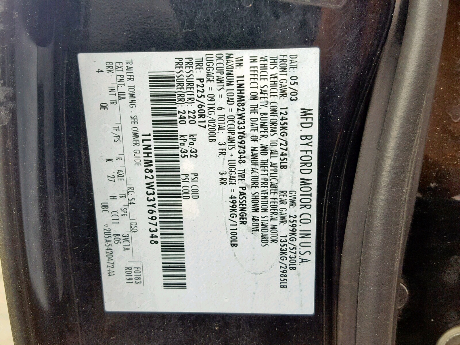 VIN: 1LNHM82W33Y697348
