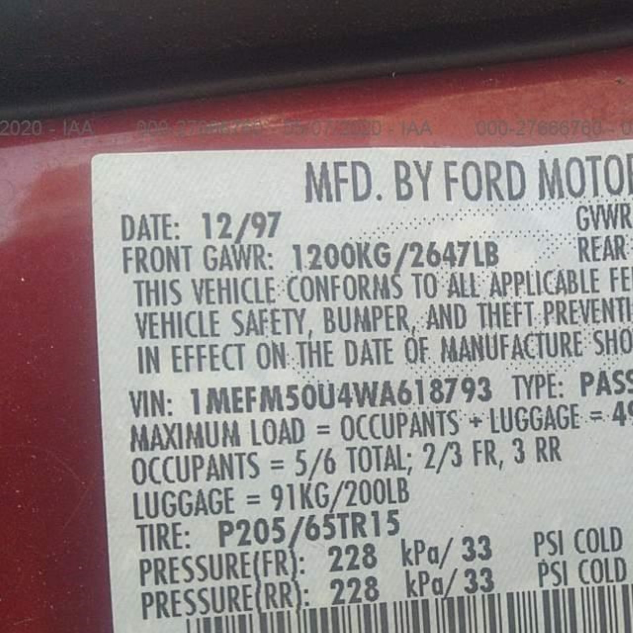 VIN: 1MEFM50U4WA618793