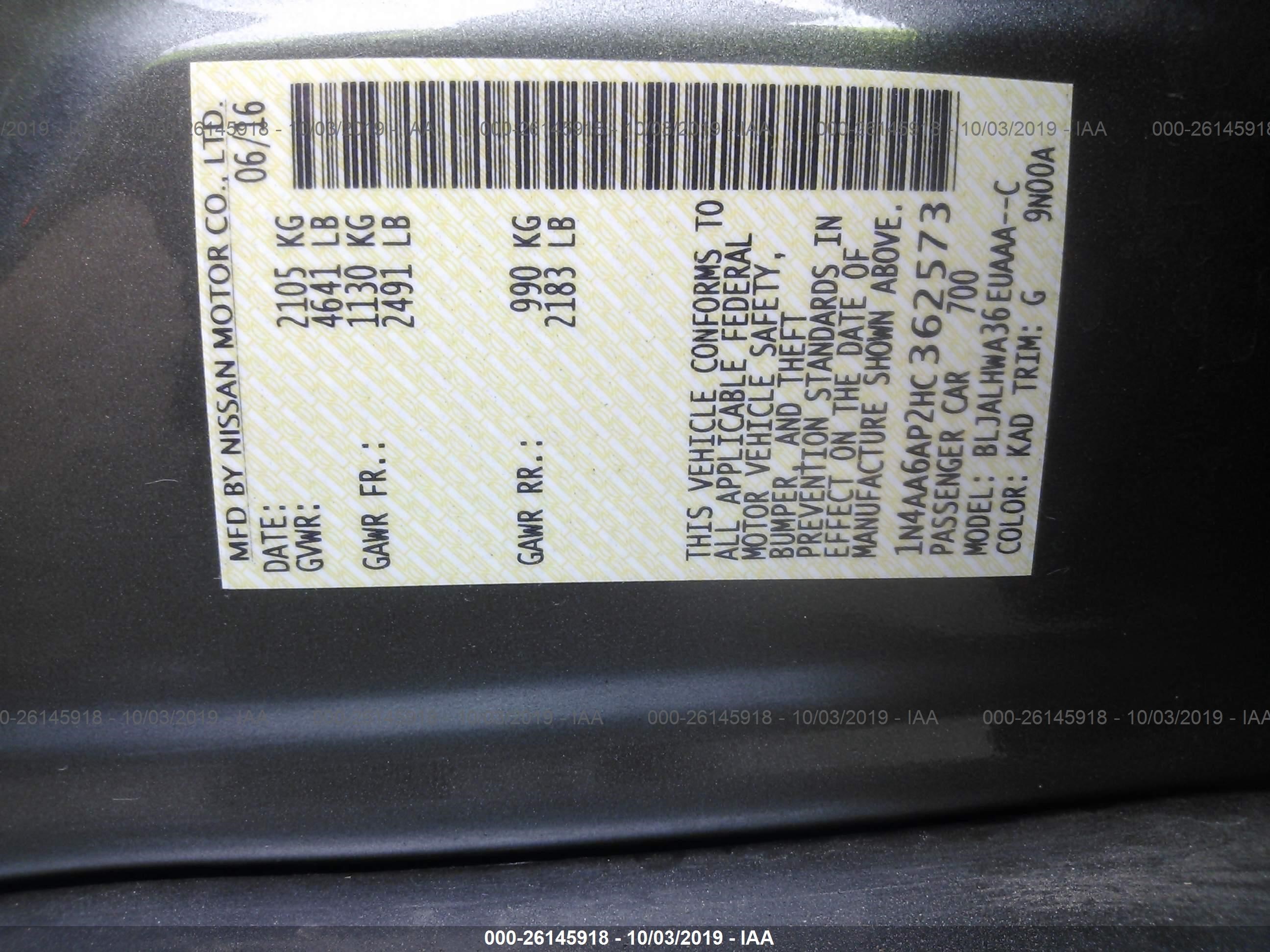 VIN: 1N4AA6AP2HC362573
