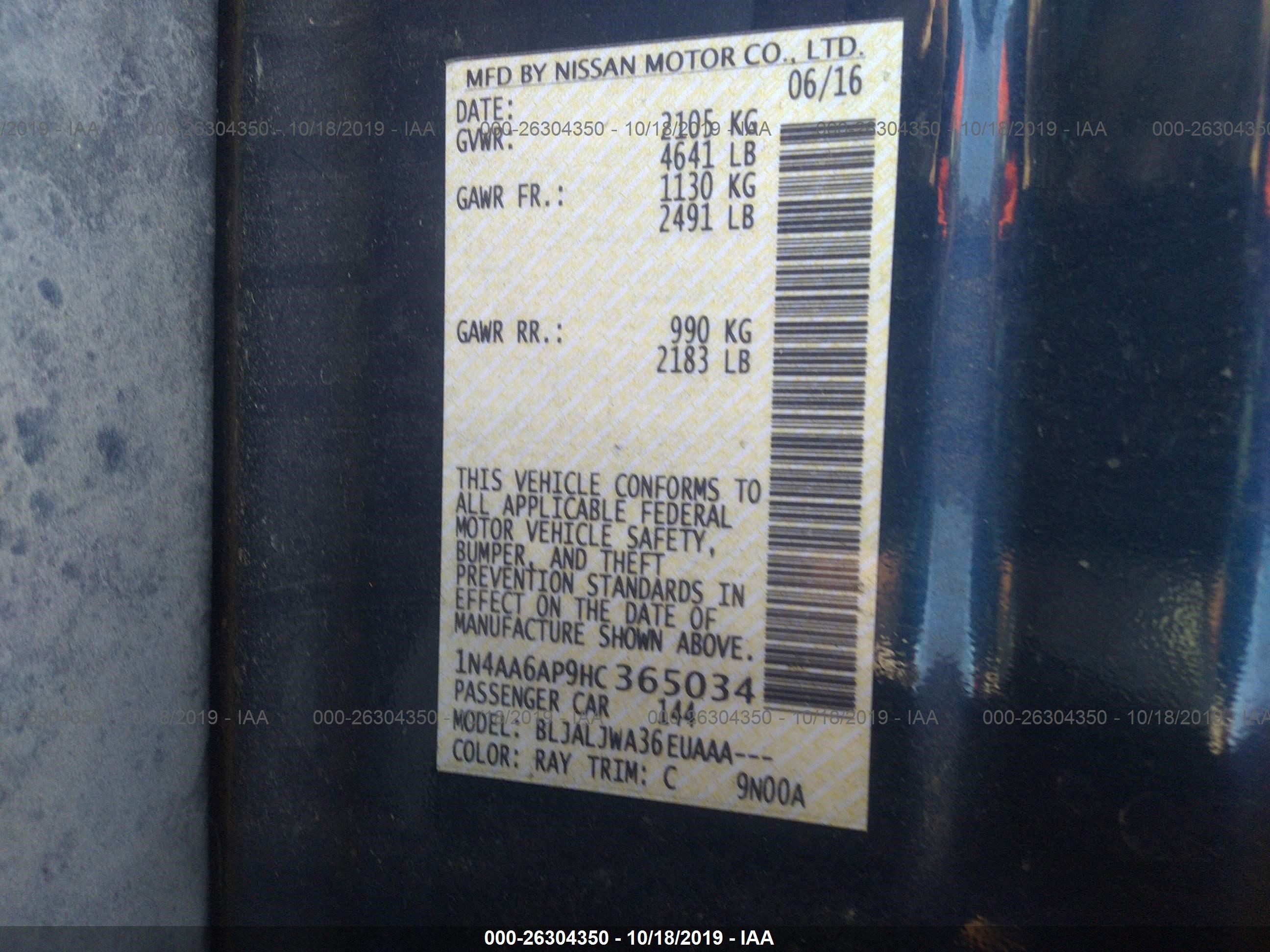 VIN: 1N4AA6AP9HC365034