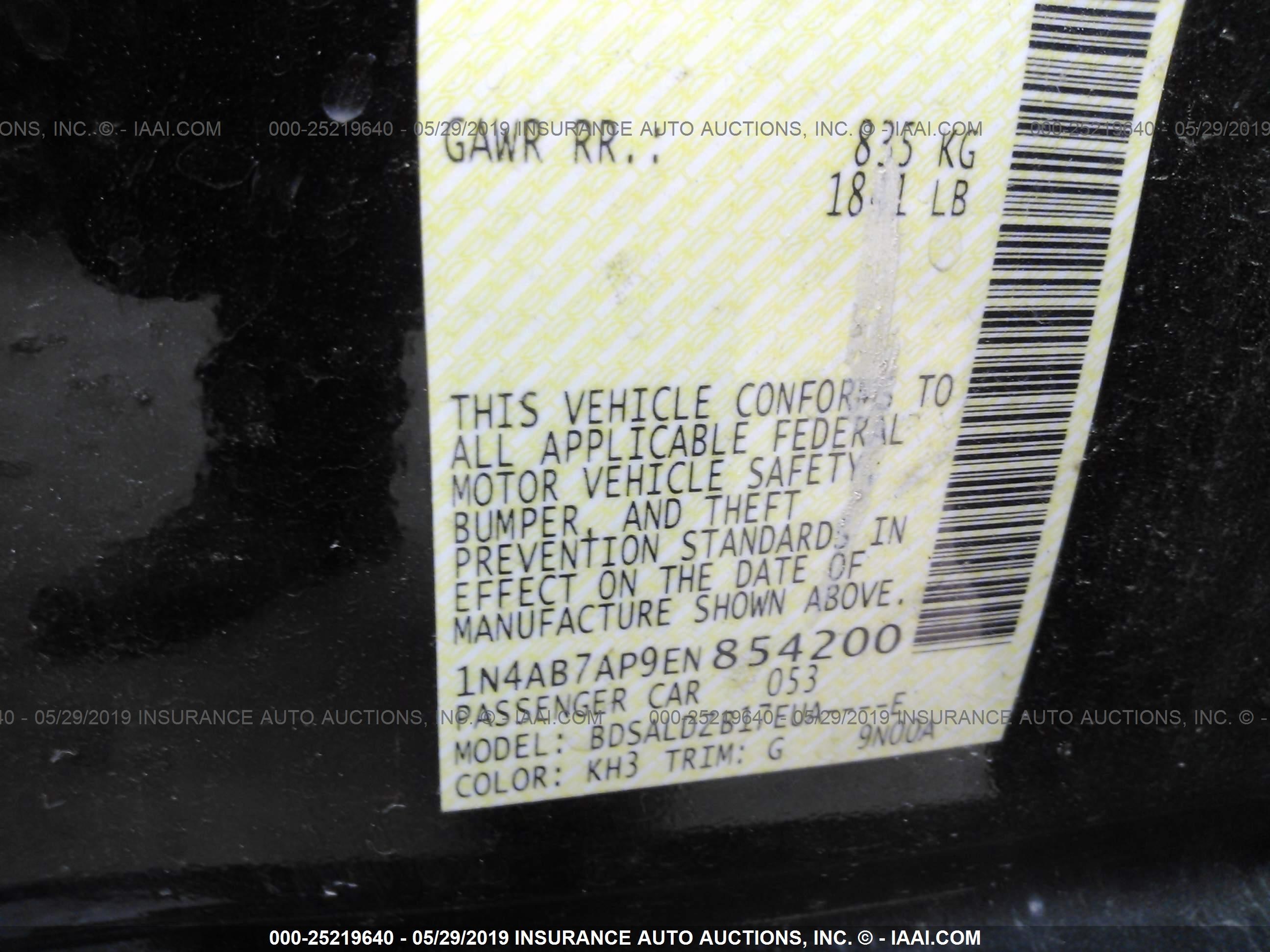 VIN: 1N4AB7AP9EN854200