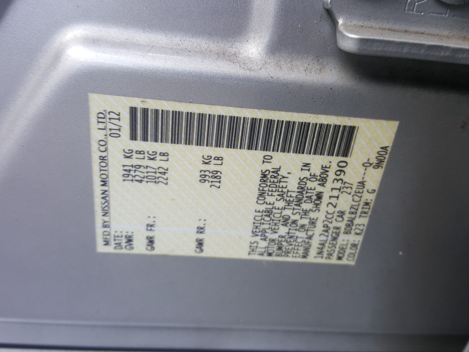 VIN: 1N4AL2AP2CC211390