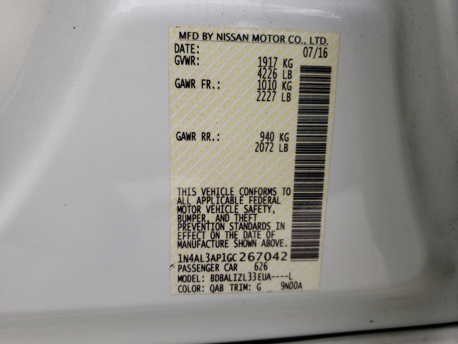 VIN: 1N4AL3AP1GC267042