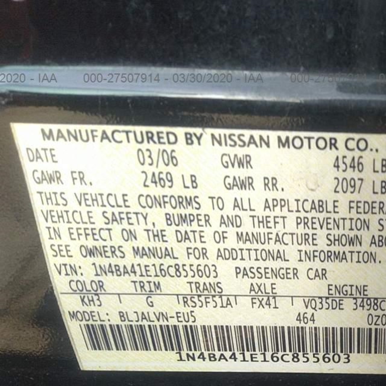 VIN: 1N4BA41E16C855603