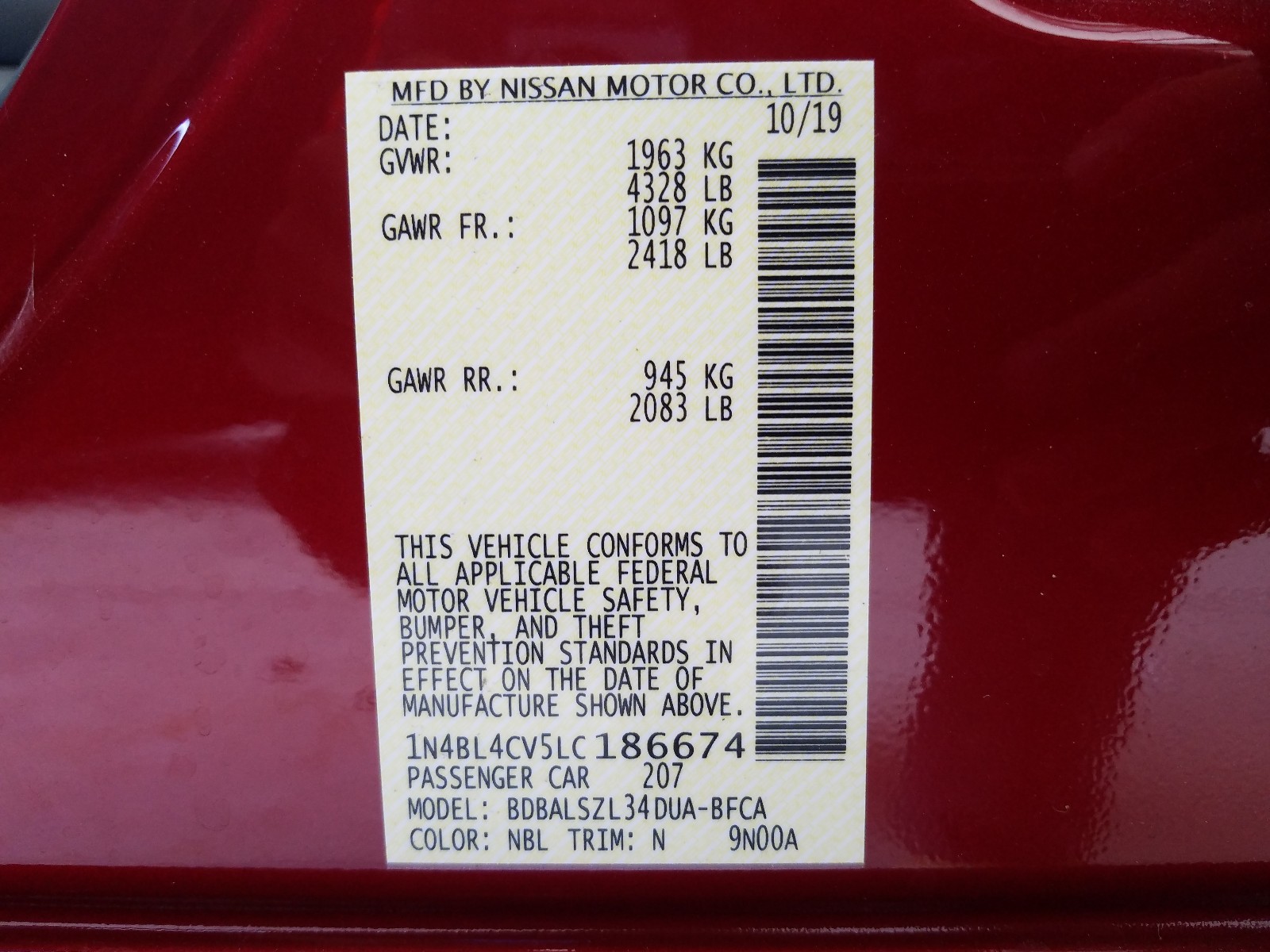 VIN: 1N4BL4CV5LC186674