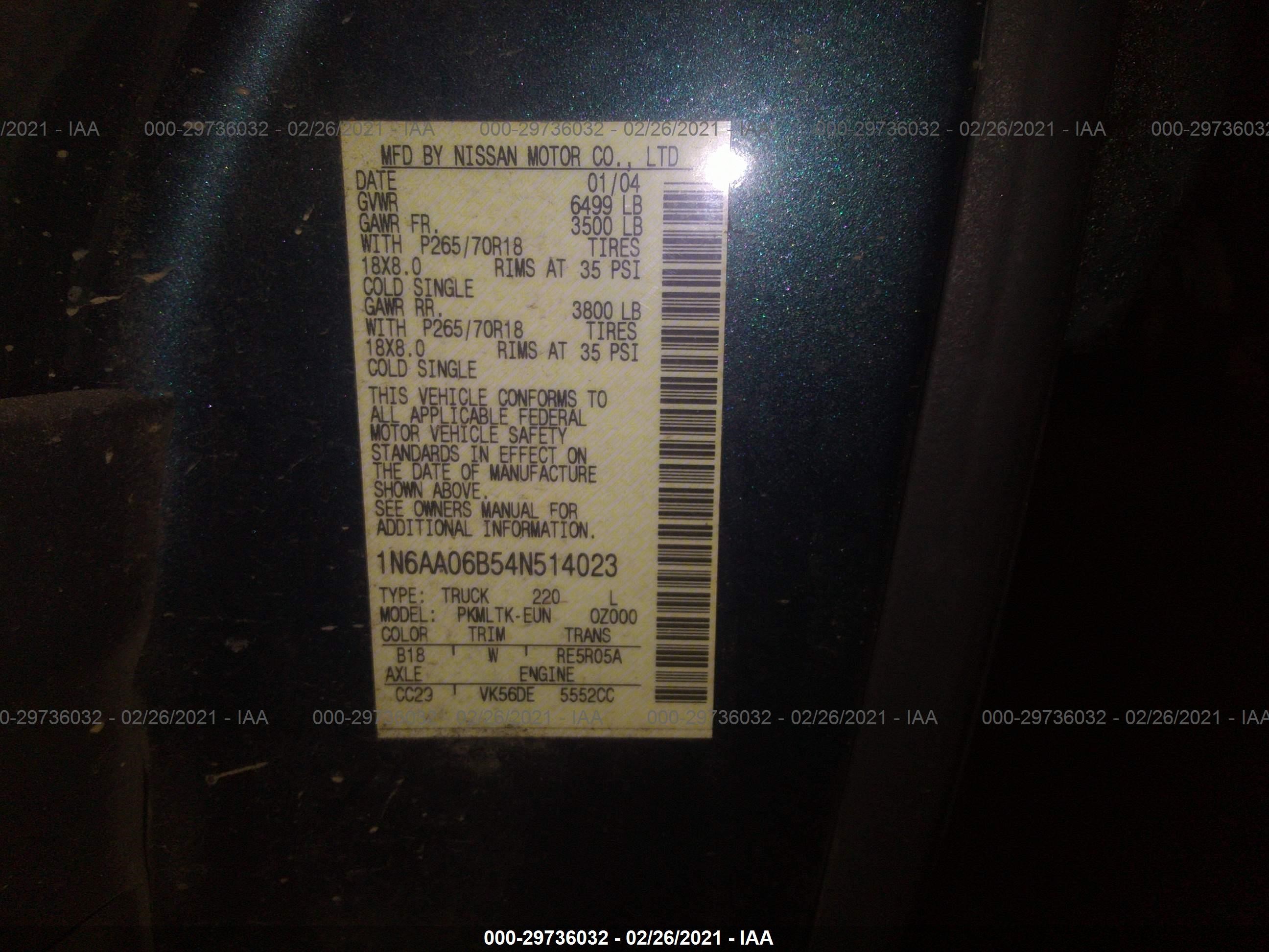 VIN: 1N6AA06B54N514023