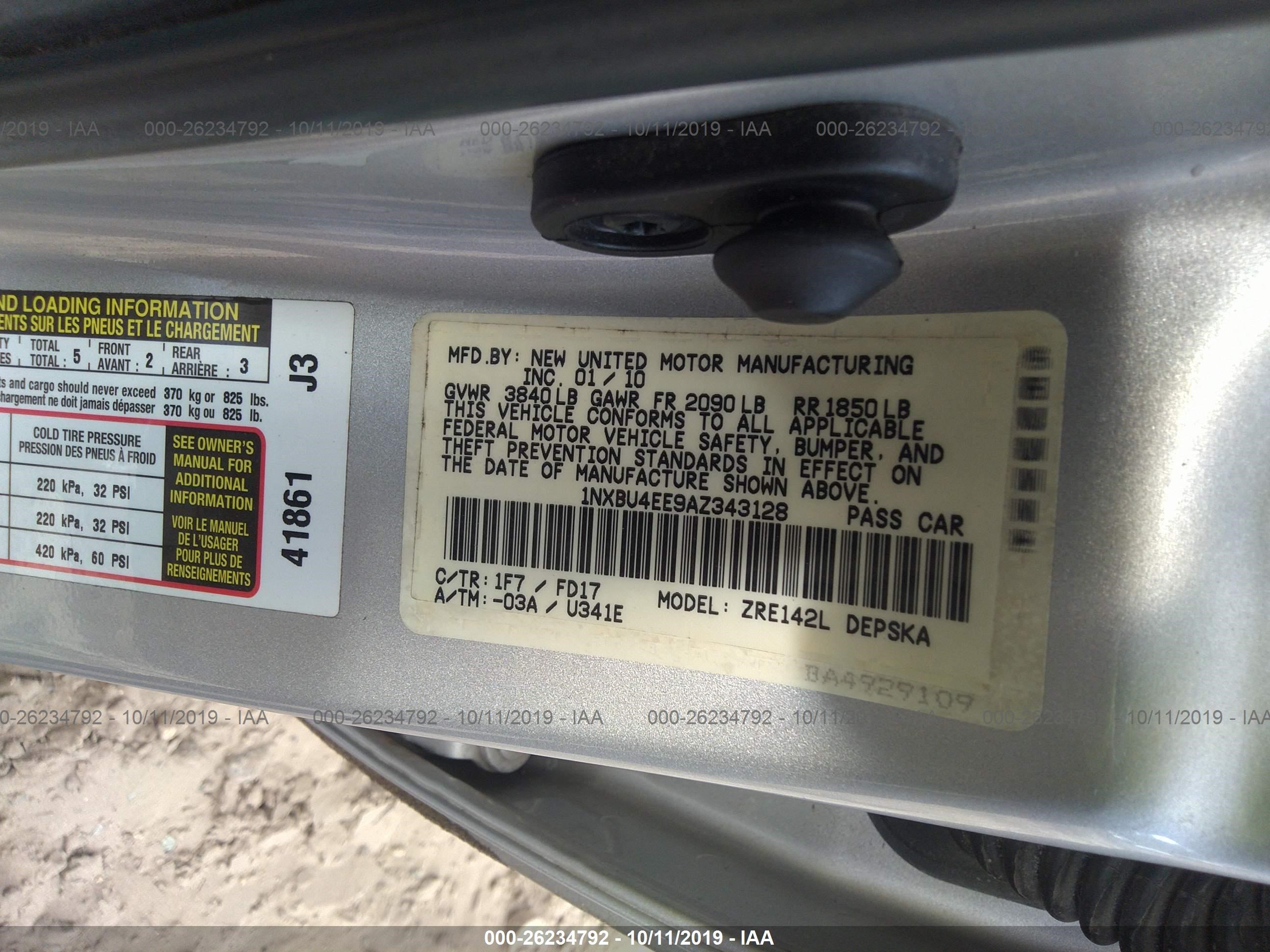 VIN: 1NXBU4EE9AZ343128