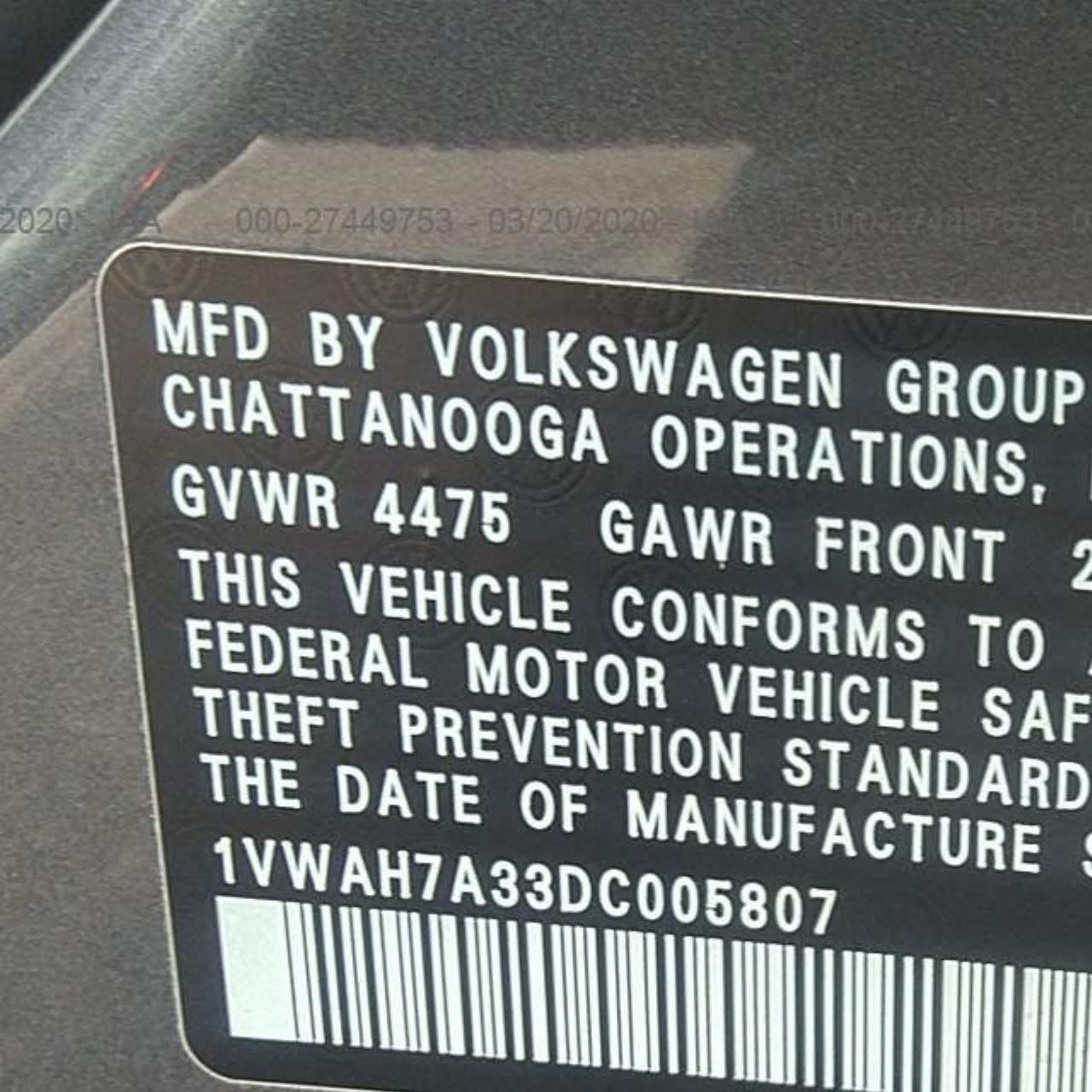 VIN: 1VWAH7A33DC005807